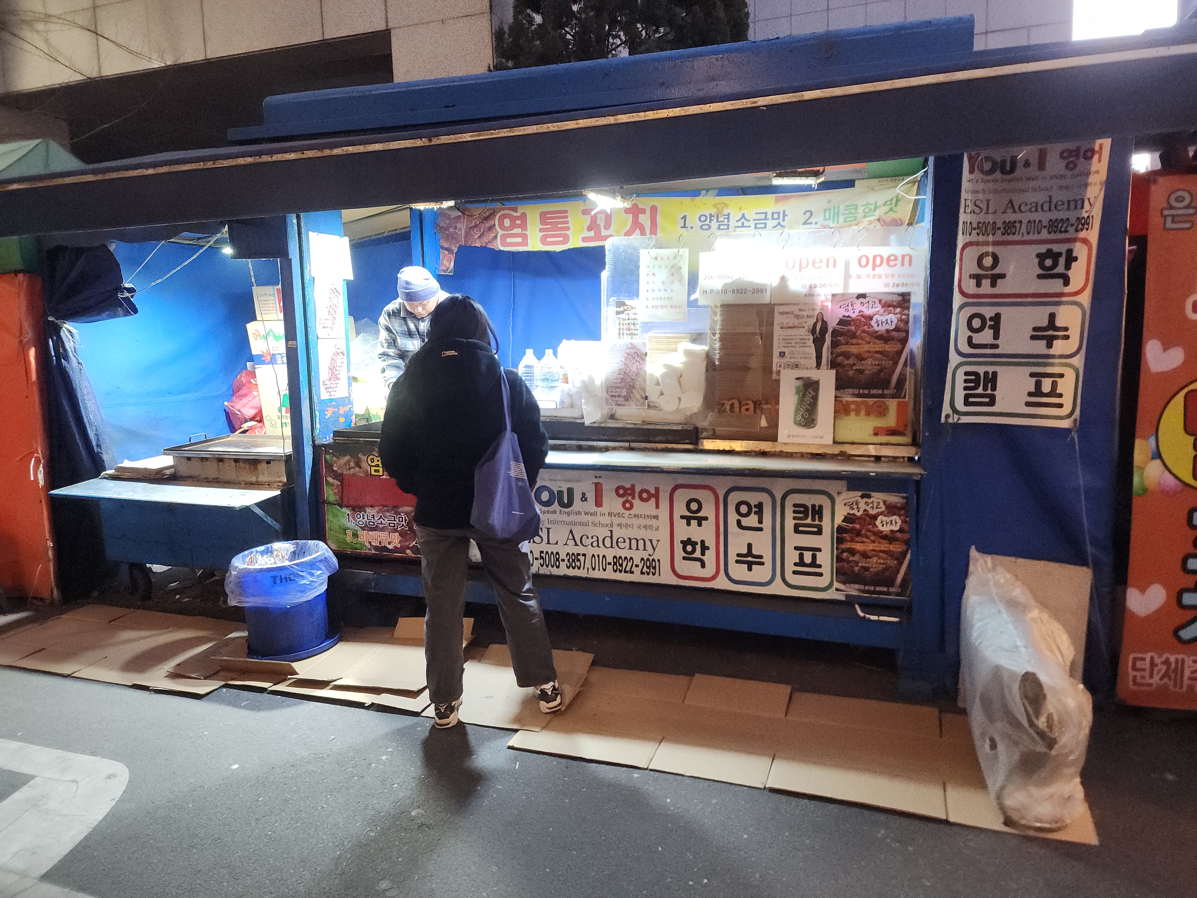 성심당 본점 앞 쪽에서 판매하는 염통꼬치 포장마차입니다.