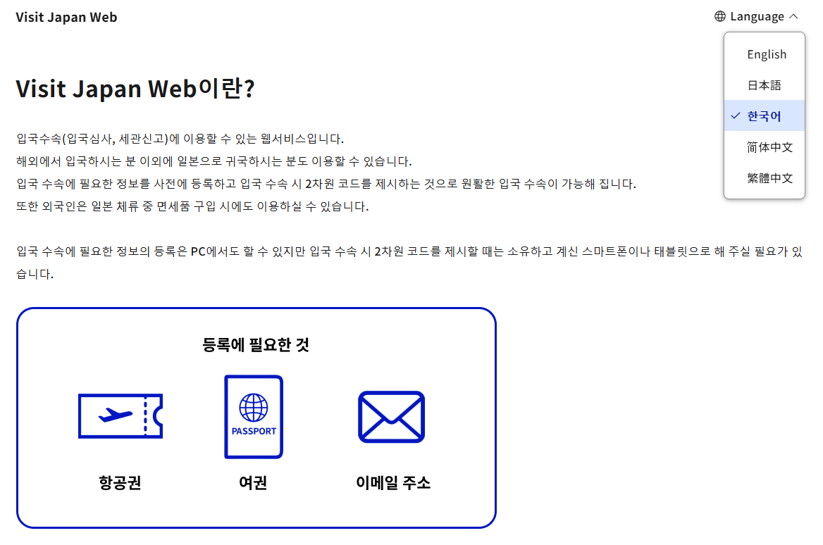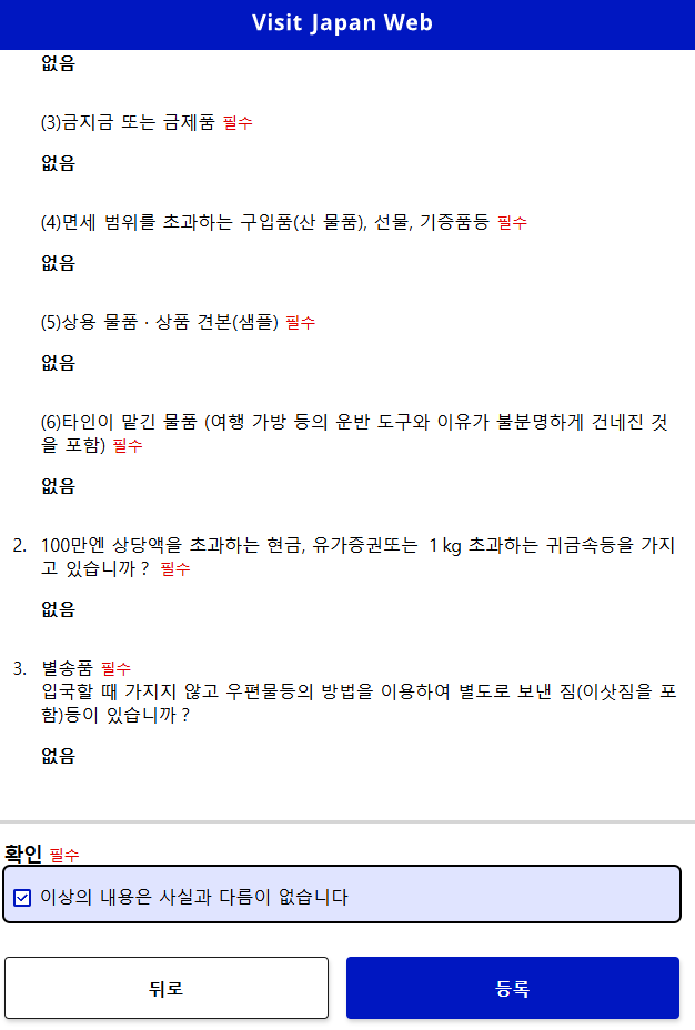 비짓재팬웹 입국심사 및 세관신고 등록하기