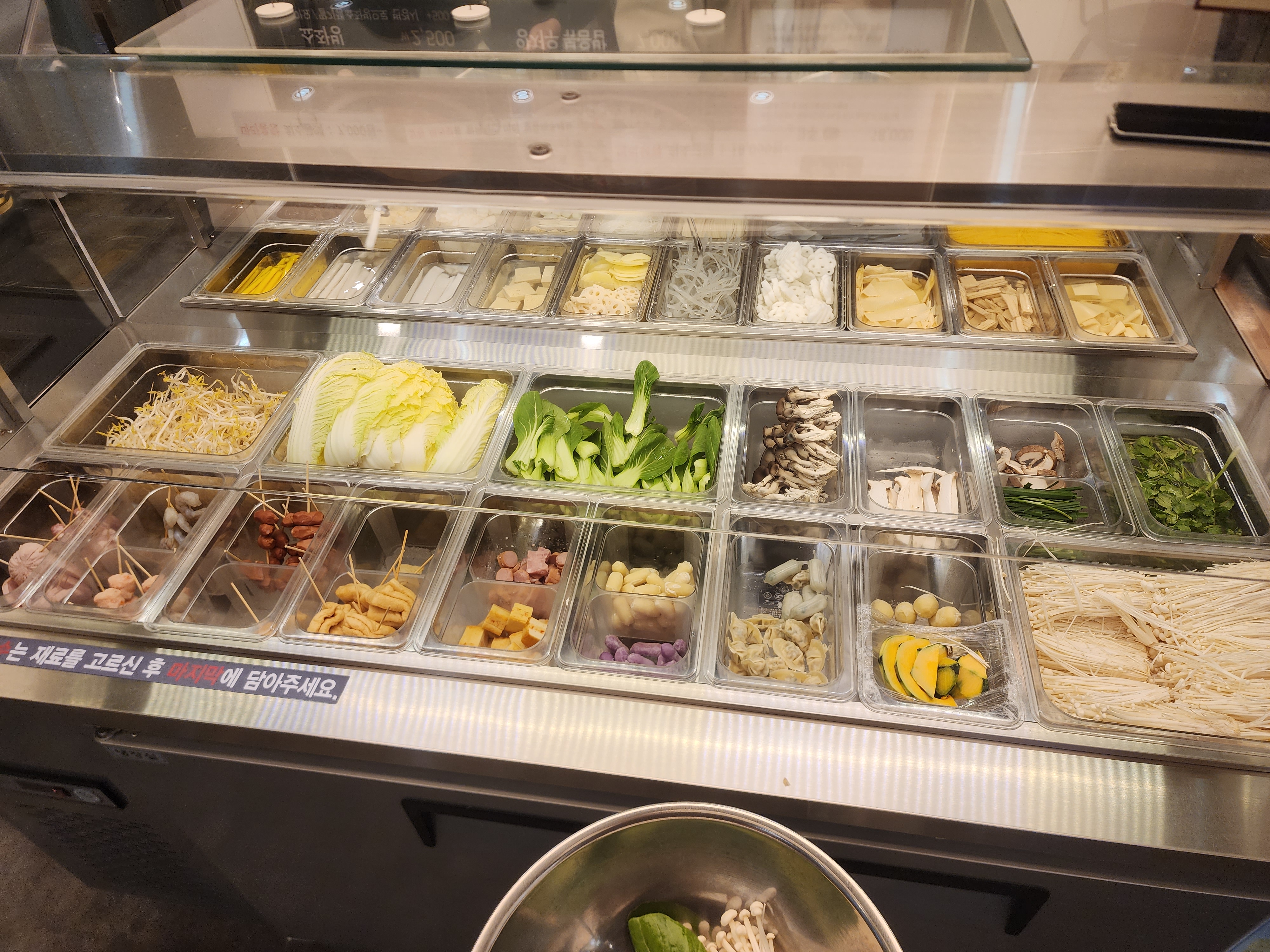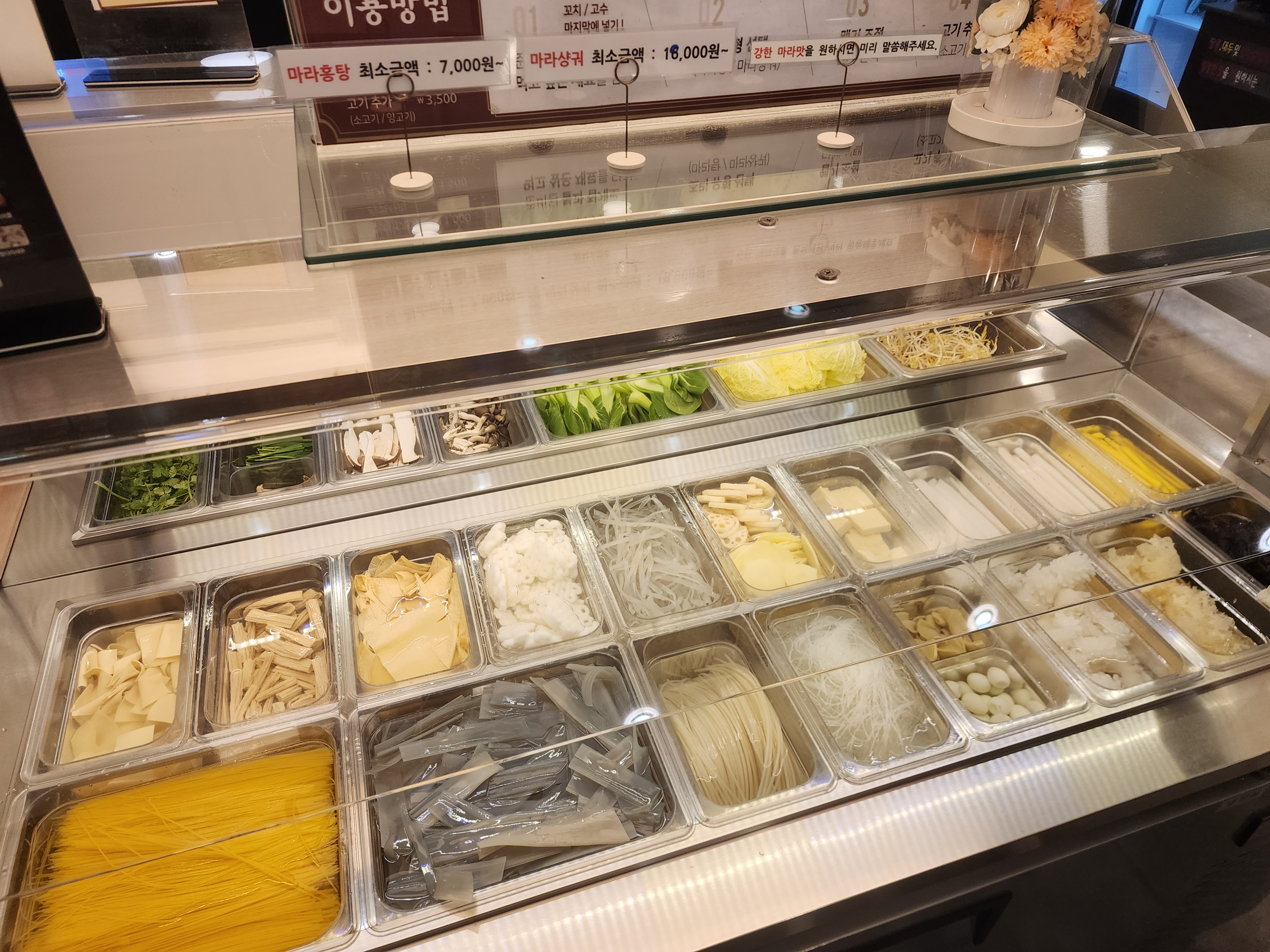 마라탕 재료들이 신선하고 깨끗해 보입니다.