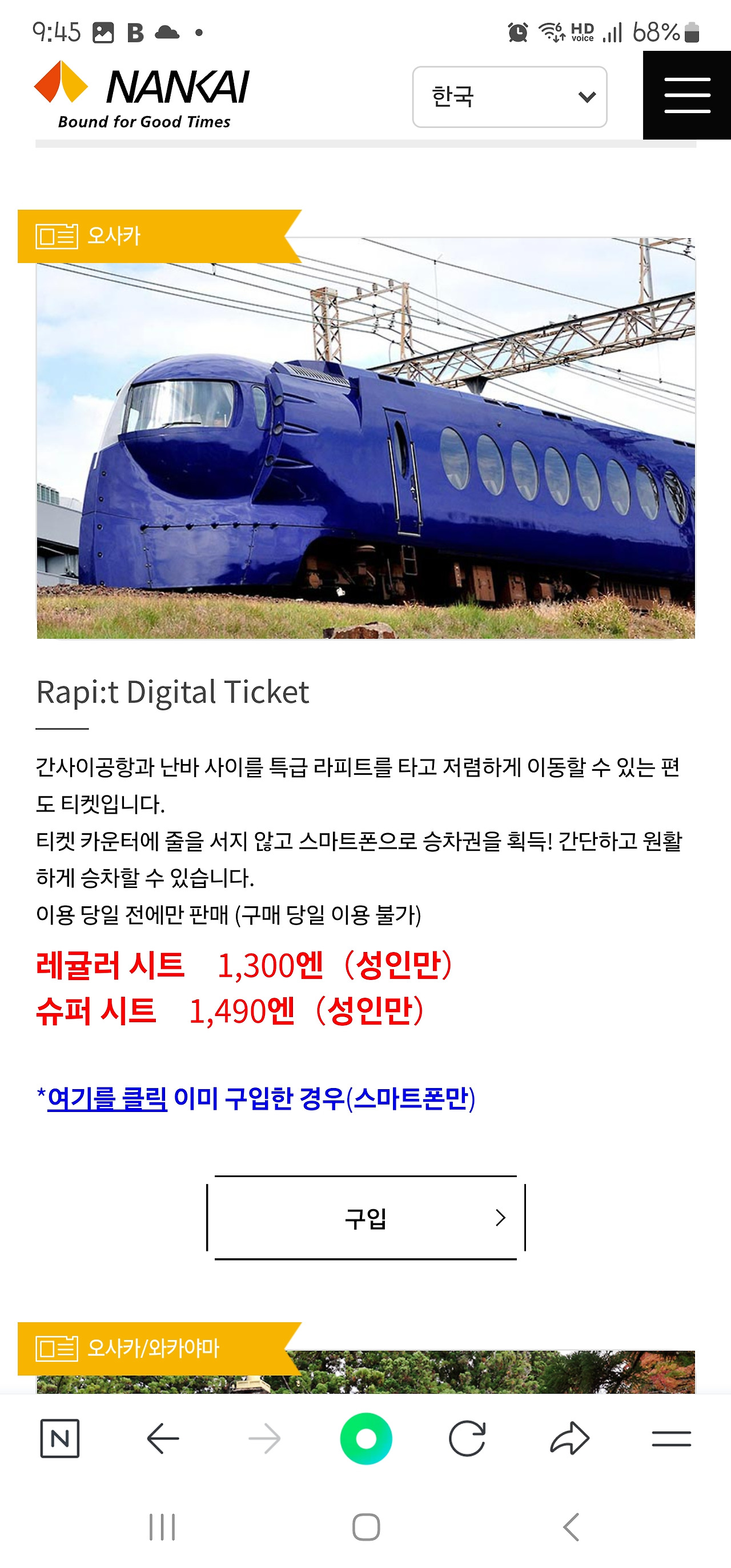 여러분, 안녕하세요!! 지난번 비짓재팬에 이어서 일본 여행 준비를 하려고 합니다. 이번에는 간사이 공항에서 난바역으로 가기 위한 열차표를 예매하려고 하는데요. 라피트를 타고 가거나 공