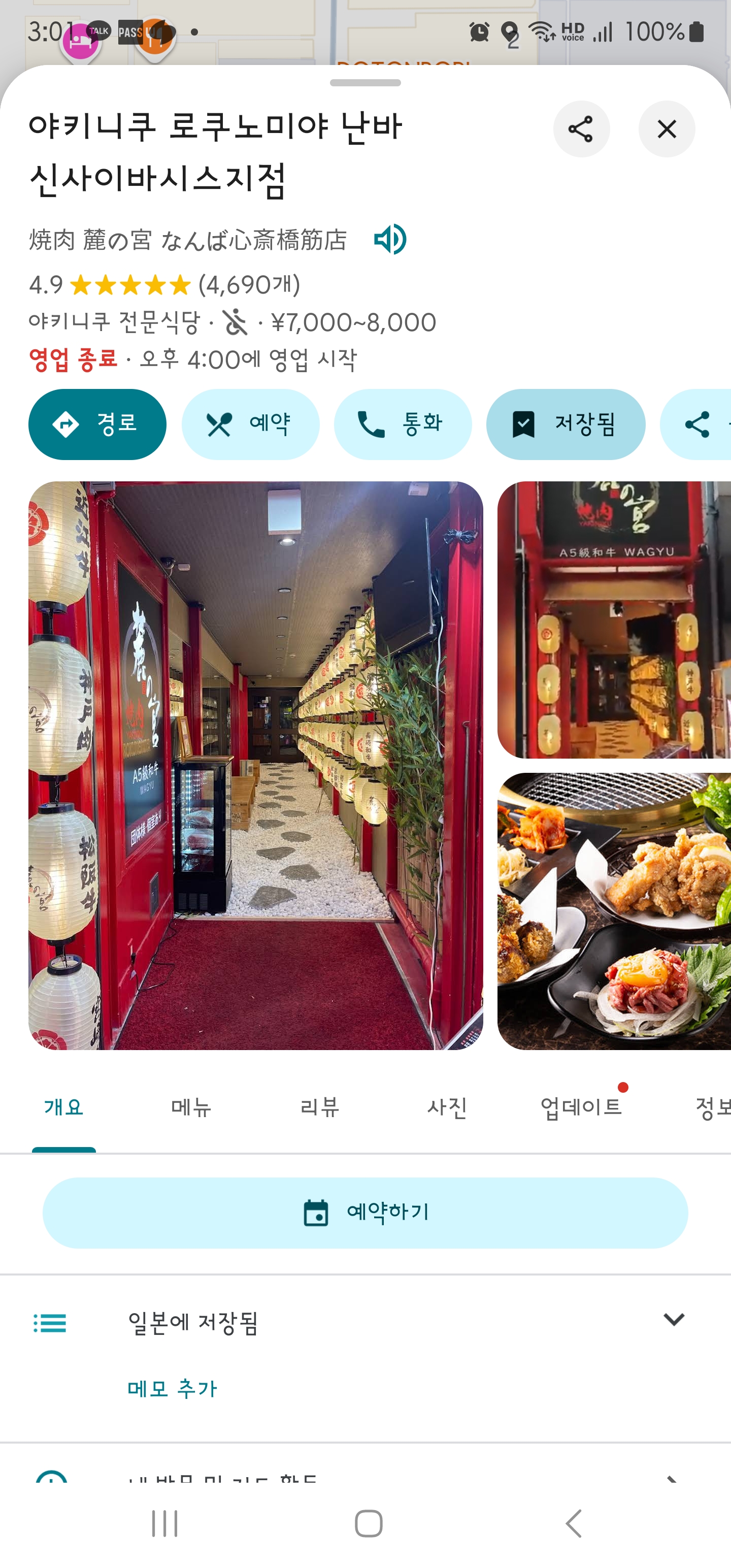 위 지도를 누르면 구글 지도가 나오는데 식당 예약이 가능합니다.