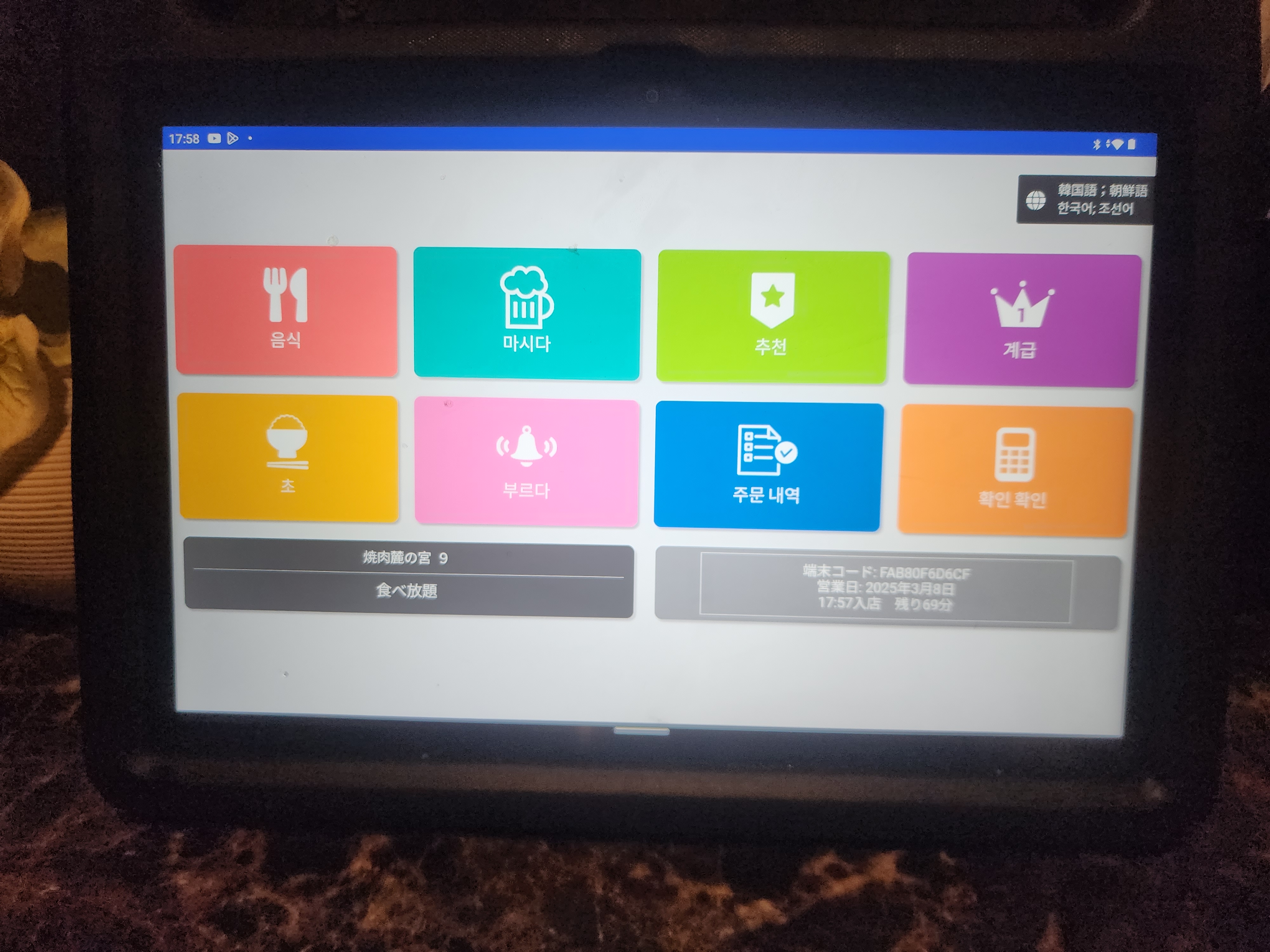 종업원이 이제 라스트 오더를 해야 한다고 들어온 후 시간이 지나면 태블릿 화면이 바뀝니다.