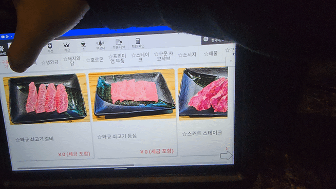 추가적인 반찬이나 쌈 같은 것은 태블릿으로 주문하면 됩니다.