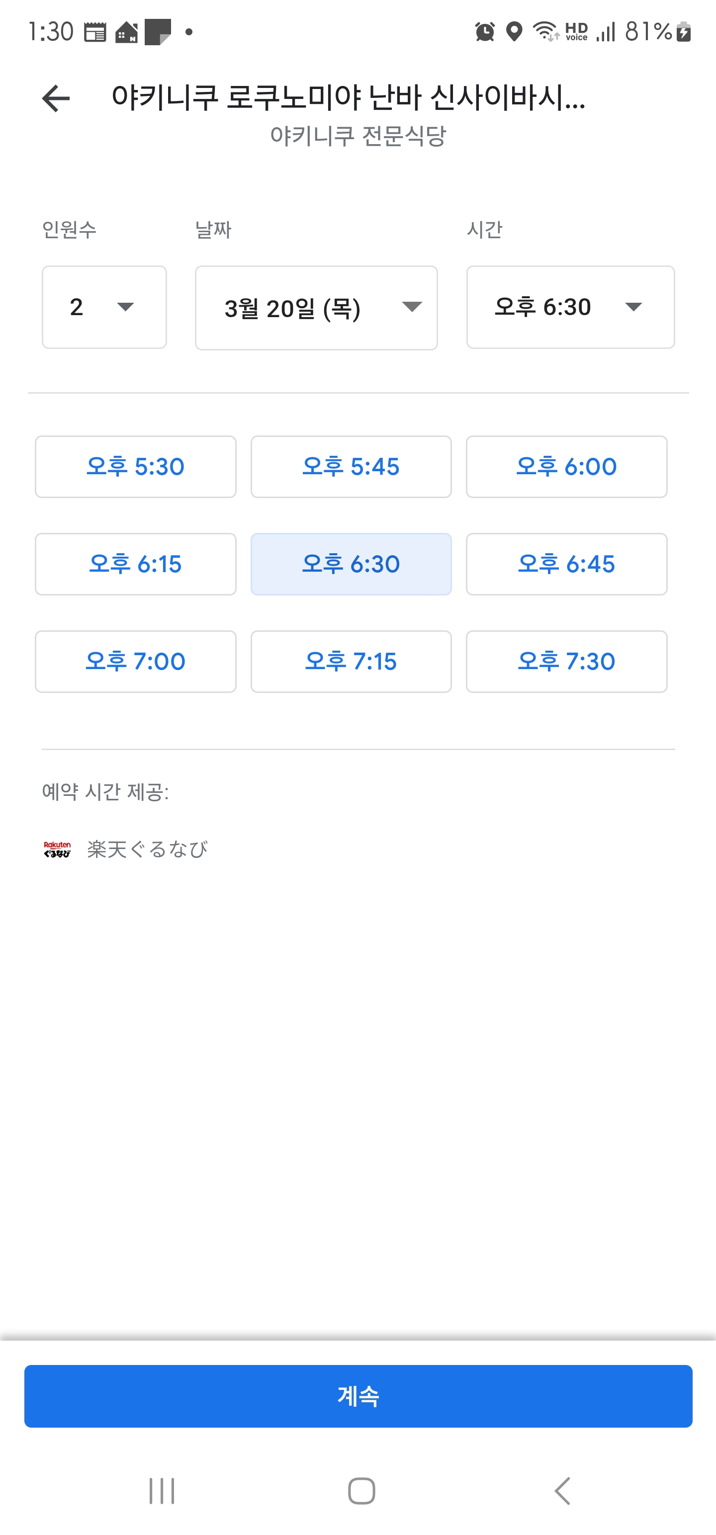 위와 같이 나오면 원하는 날짜와 인원수, 시간을 선택하면 됩니다.