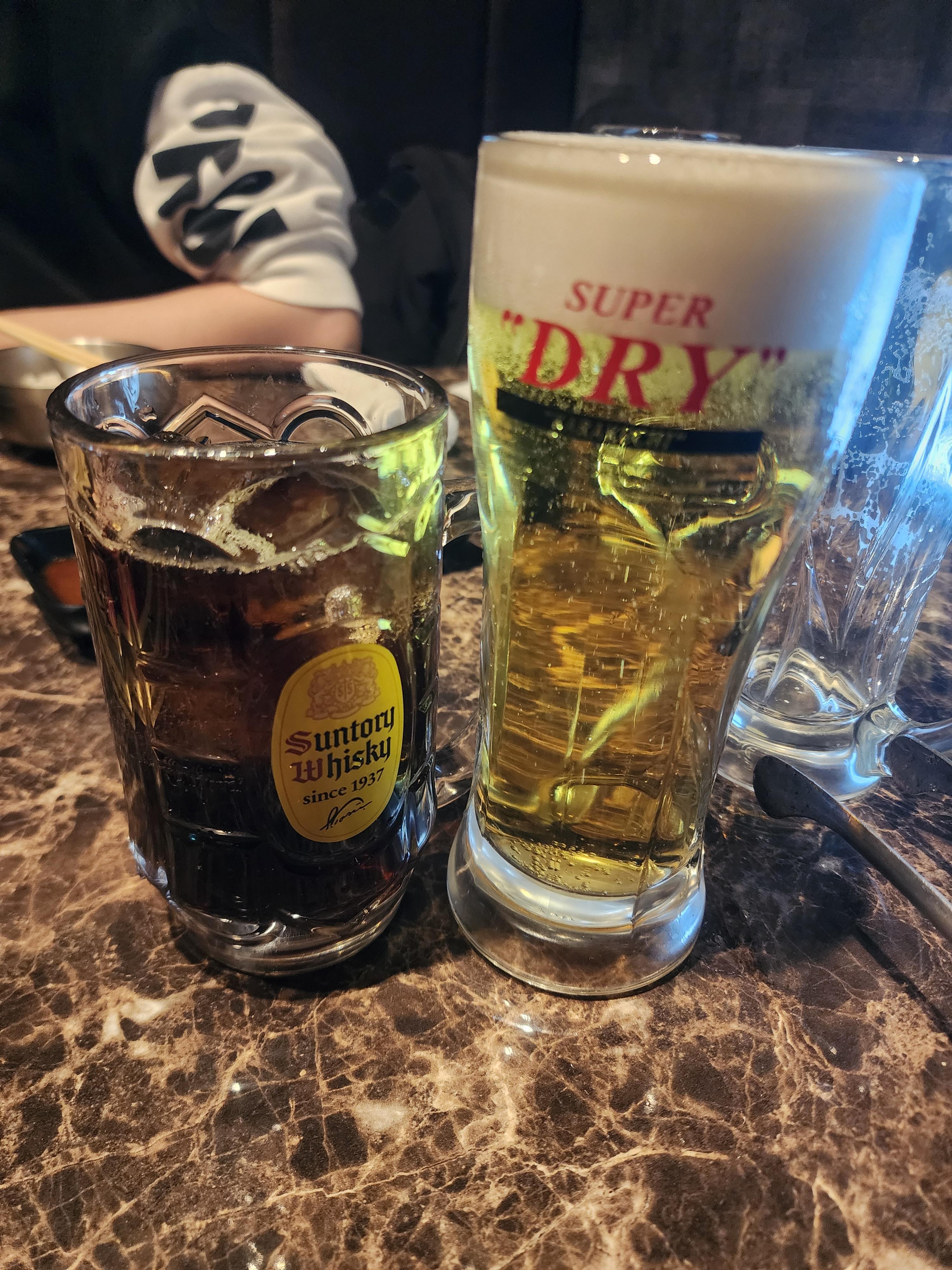 술은 생맥주와 콜라 하이볼을 주문했습니다.