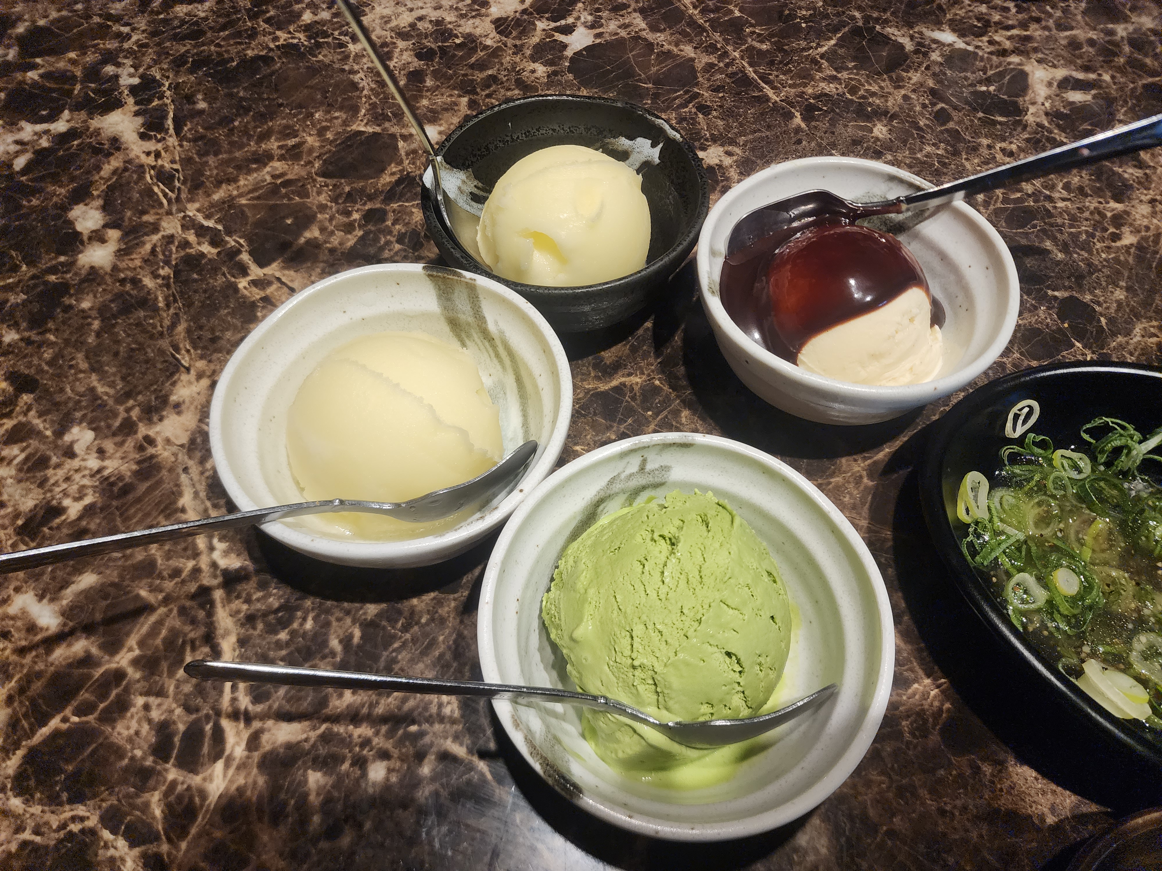 유자샤베트, 바닐라, 초코바닐라, 말차를 주문했습니다.