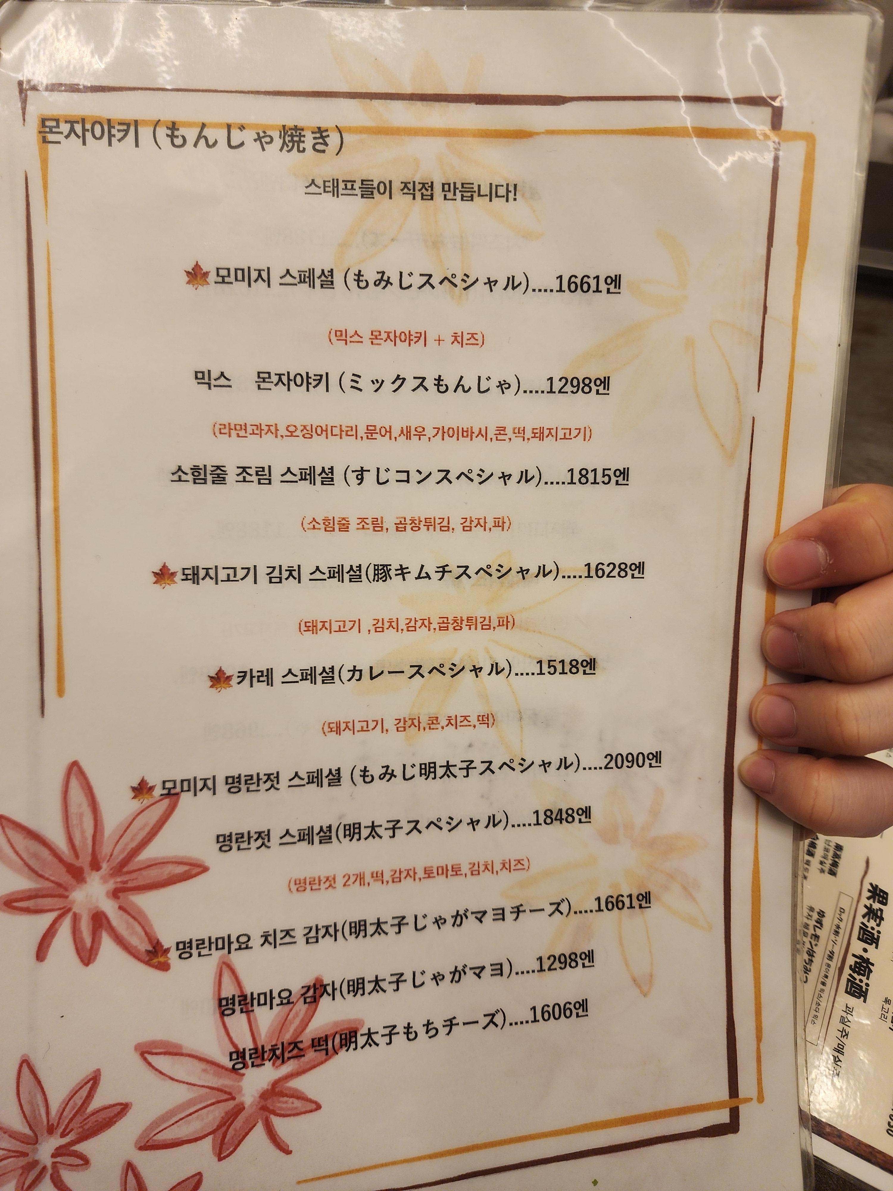 원래 오코노미야끼를 먹으려다가 몬자야끼도 판다고 해서 몬자야끼를 먹기로 결정했습니다!!