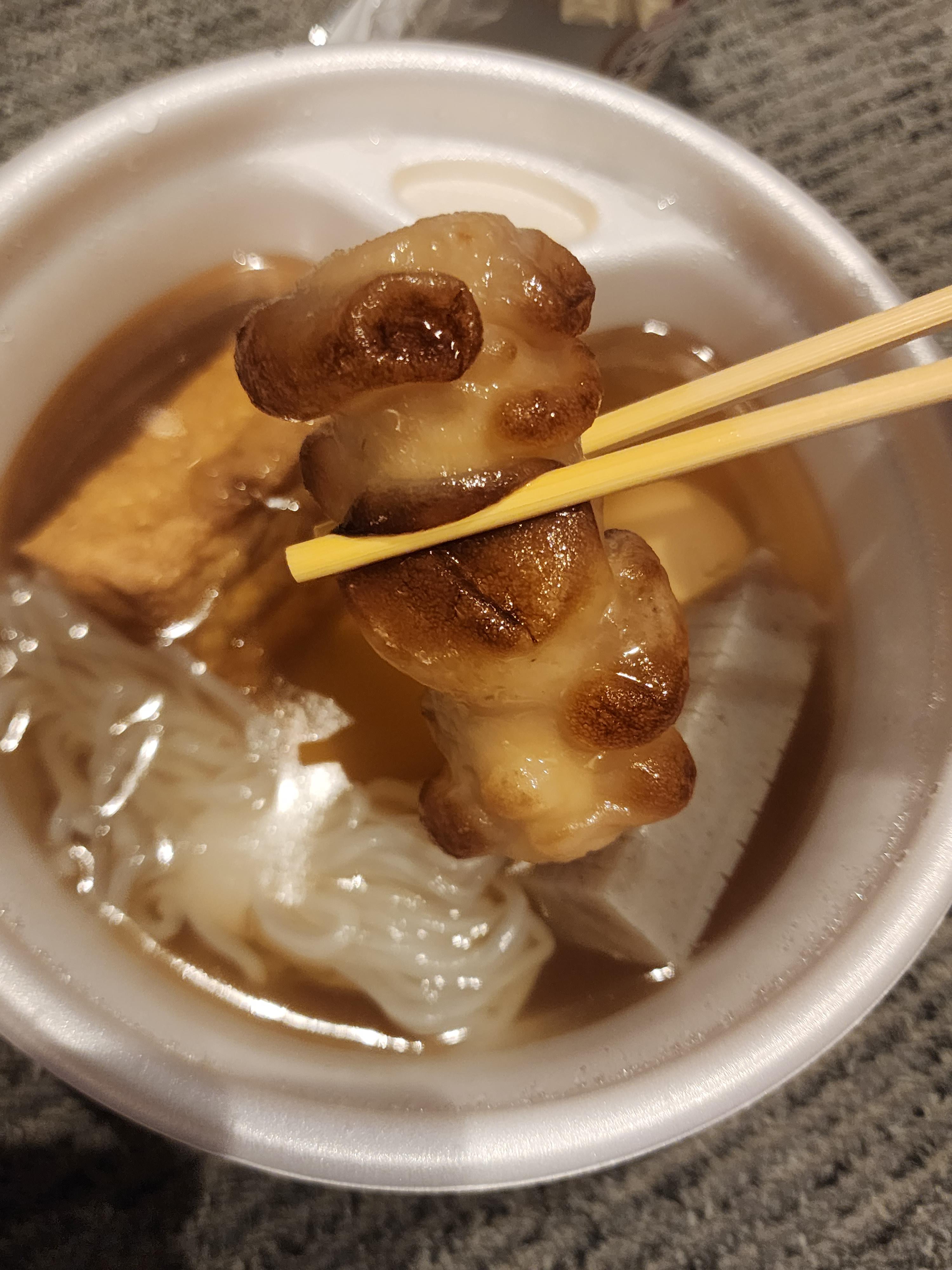 오뎅, 두부, 계란, 곤약, 당면 말이를 골랐습니다.
