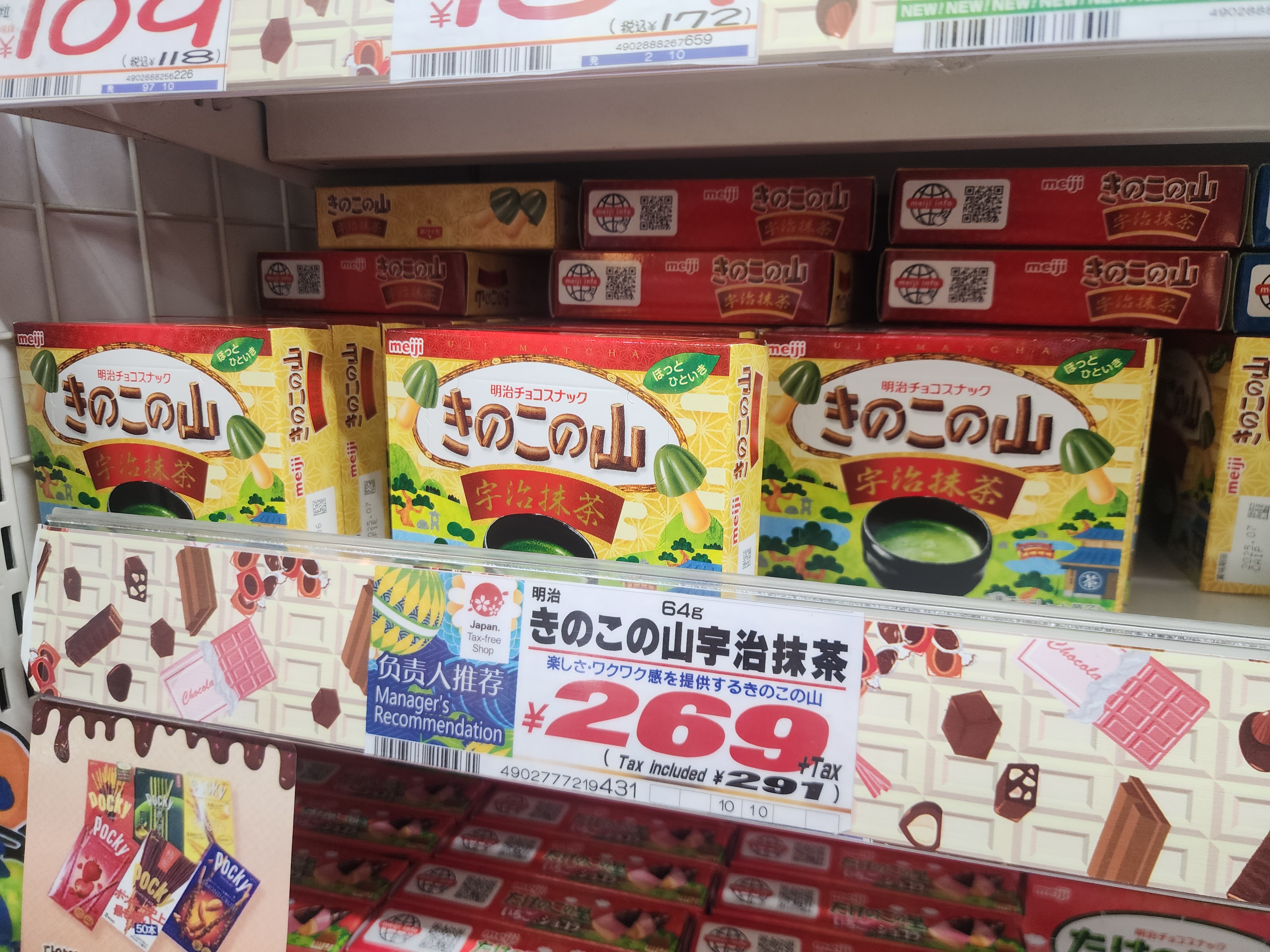 메이지 제과에서 만든 키노코노야마 우지 말차라는 과자입니다.