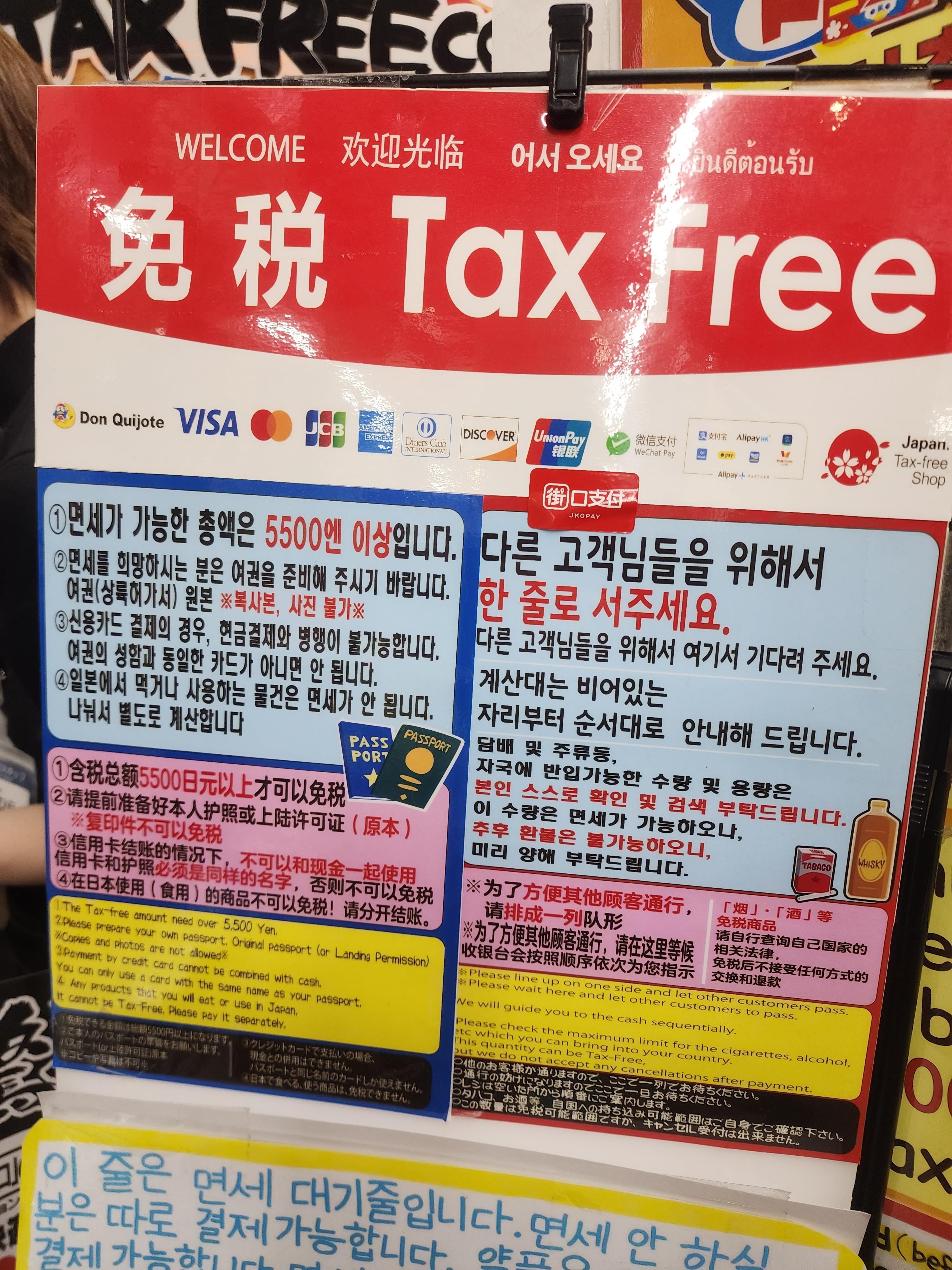 돈키호테에서 면세를 받기 위해선 5,500엔 이상 구매를 해야 합니다.