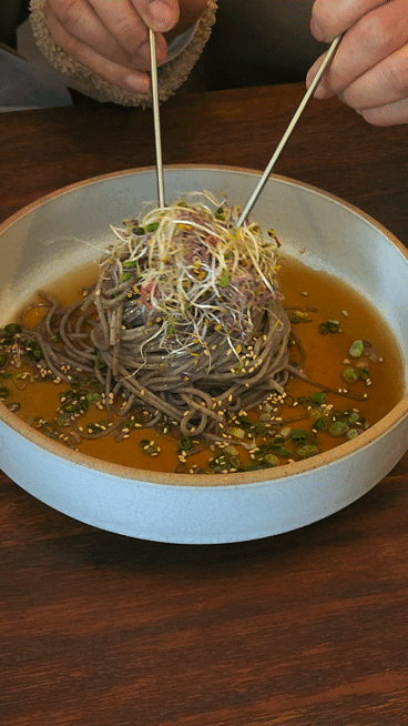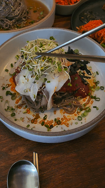 새콤한 소스의 맛과 메밀의 맛이 잘 어울리고 맛있습니다.
