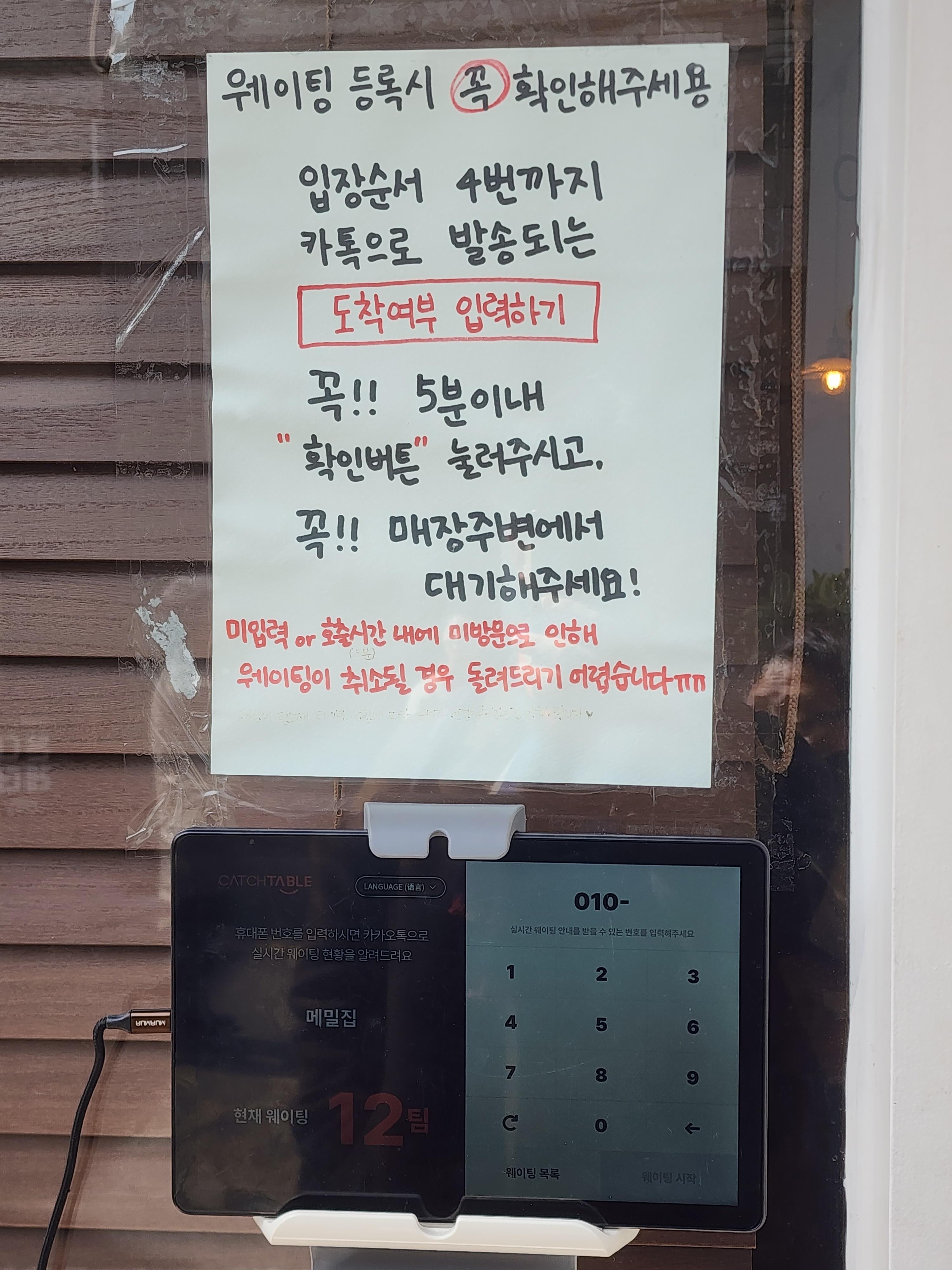 메밀집 방문 시 가장 먼저 해야 되는 웨이팅 걸어놓기입니다.