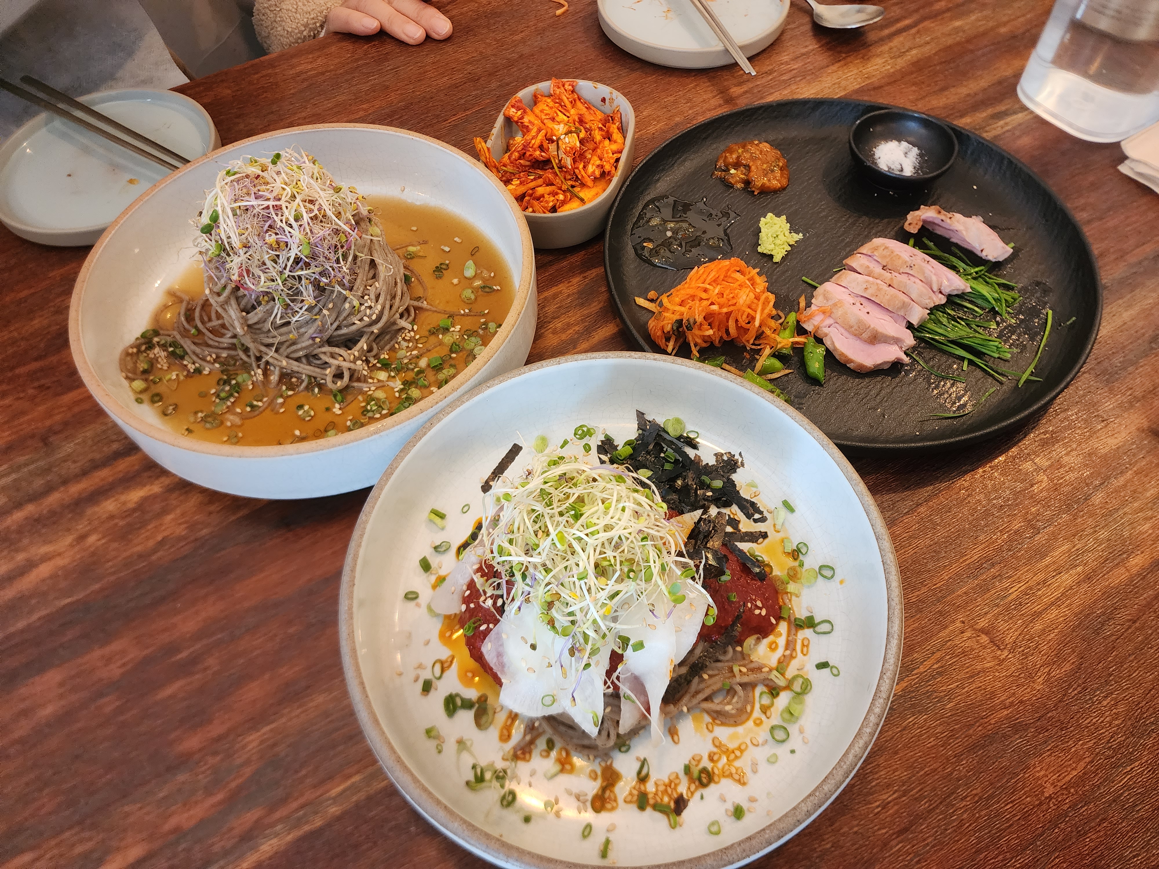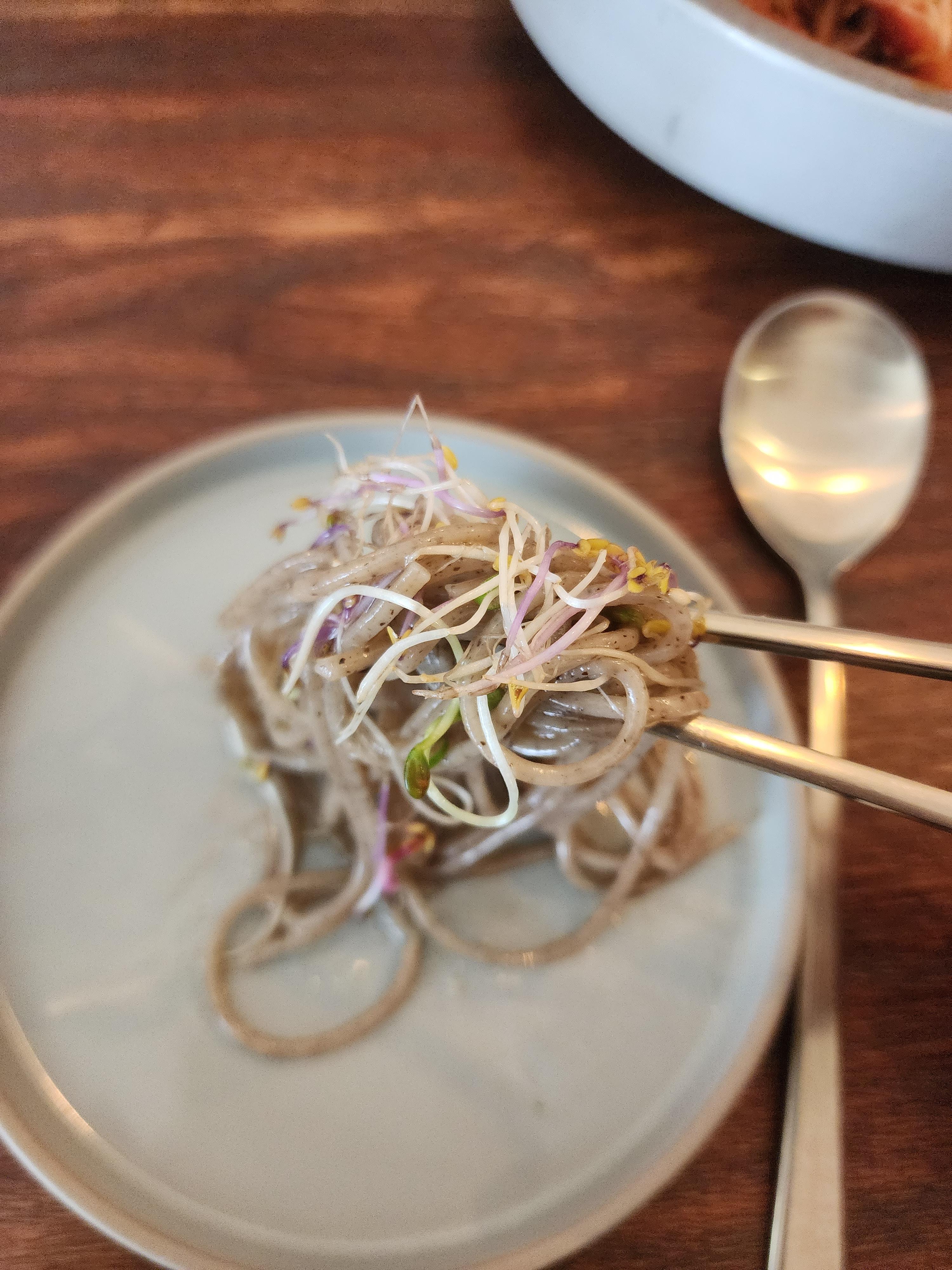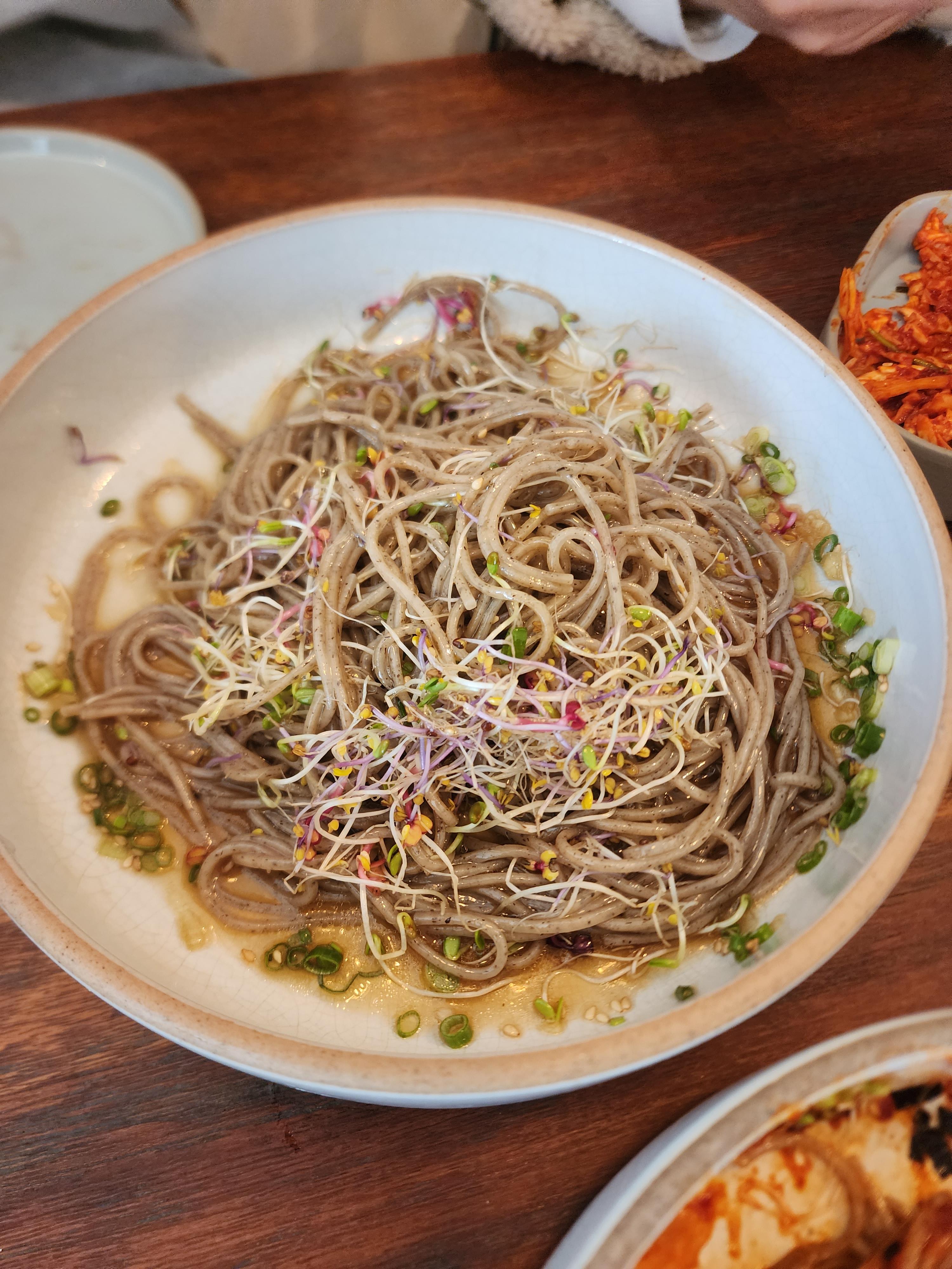 새싹의 향긋한 맛도 간장 막국수의 맛을 한층 업그레이드해 줍니다.