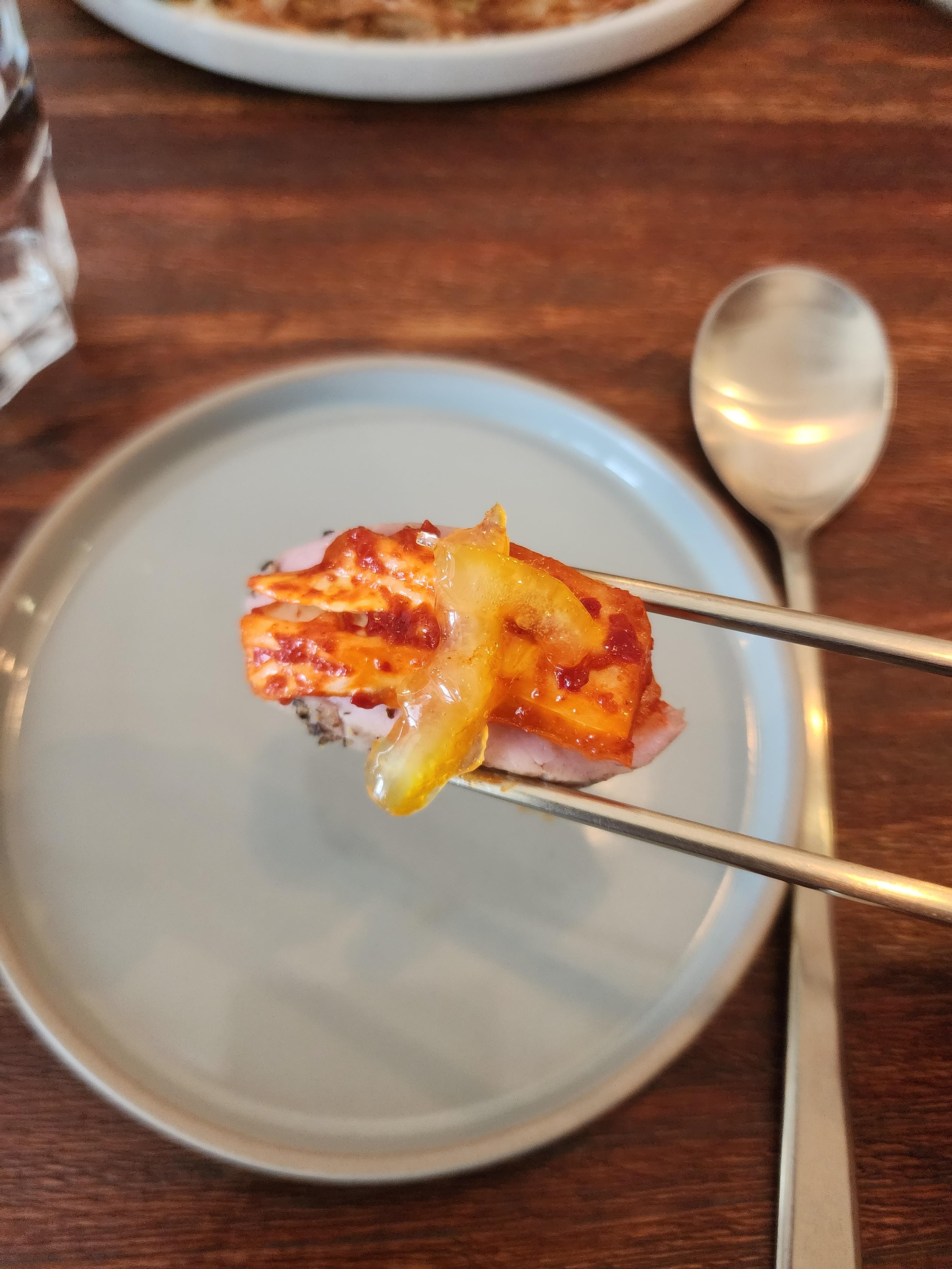 겉절이와 수육의 조합은 당연히 맛있고 좋은데 여기에 유자가 더해지니 향이 굉장히 좋아집니다.