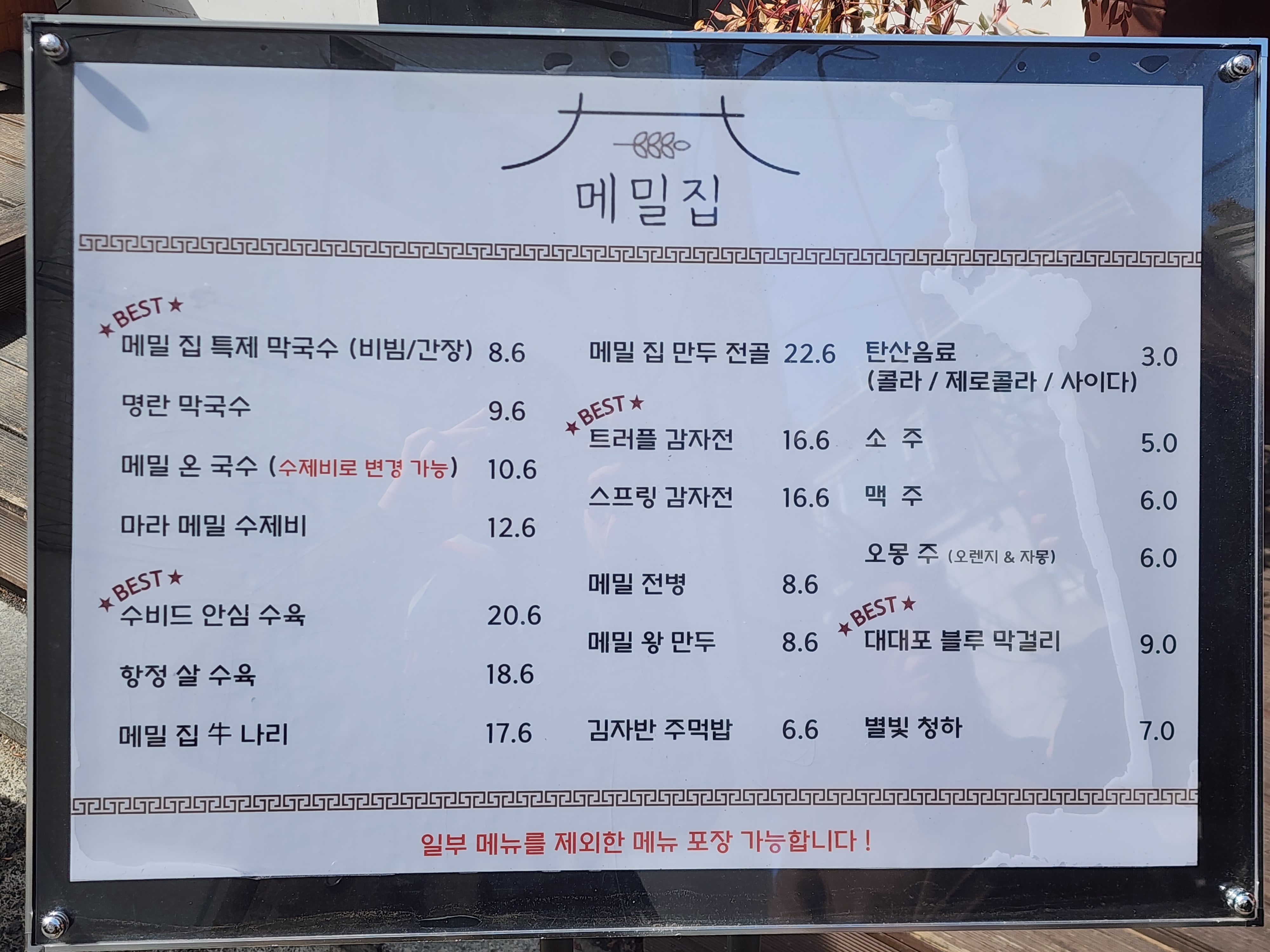 메밀집 메뉴 및 가격입니다.
