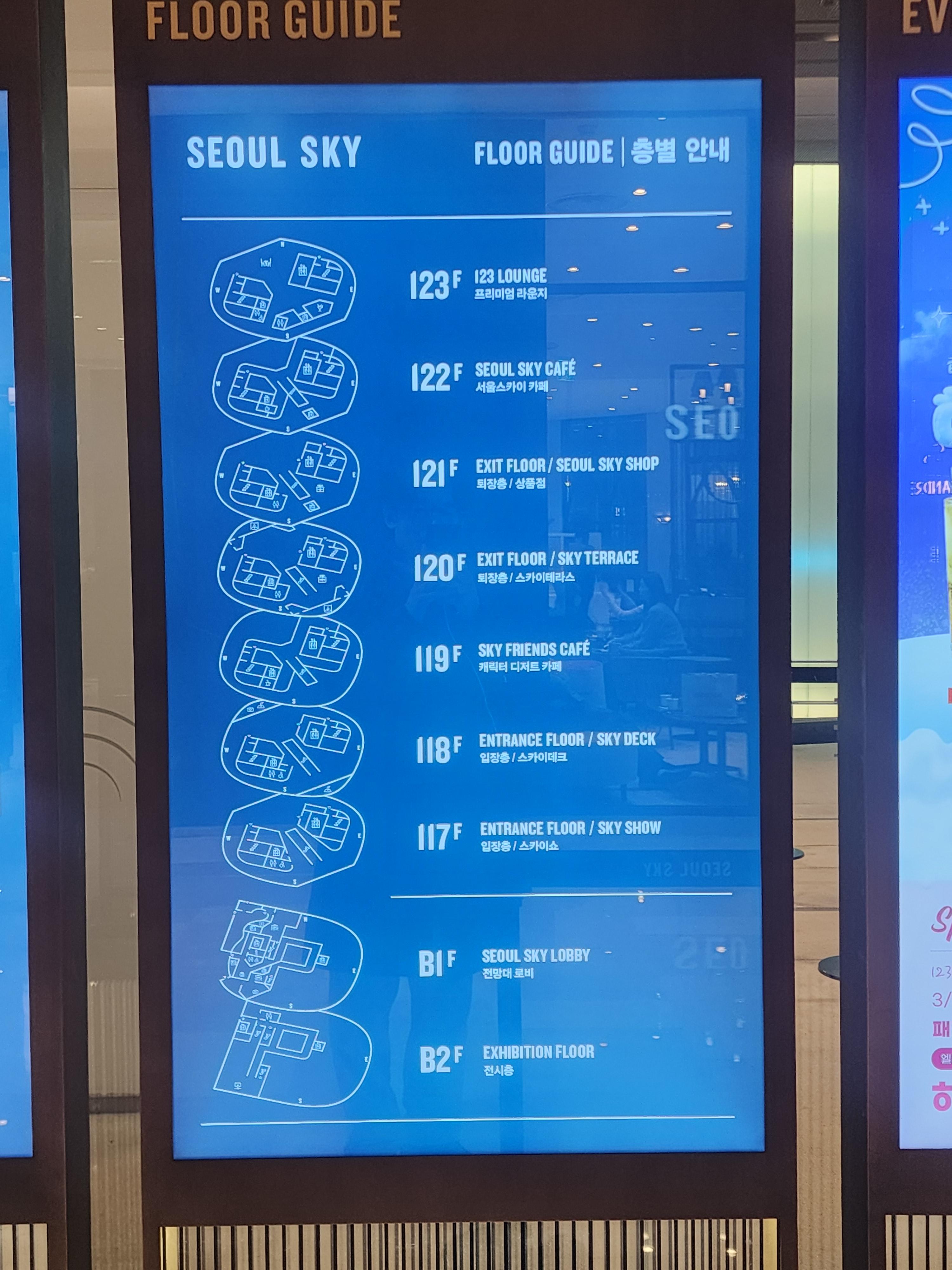 층 별로 전망대를 다 둘러보고 퇴장하실 때는 120층으로 가야 됩니다.