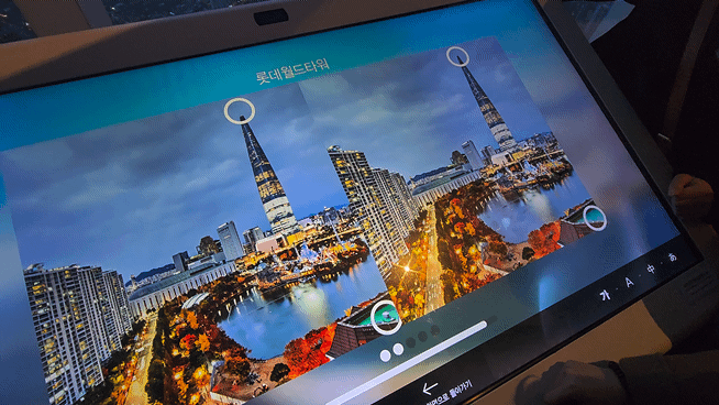 엘리베이터가 올라가는 동안 심심하지 않게 내부 전체에서 영상이 나옵니다.