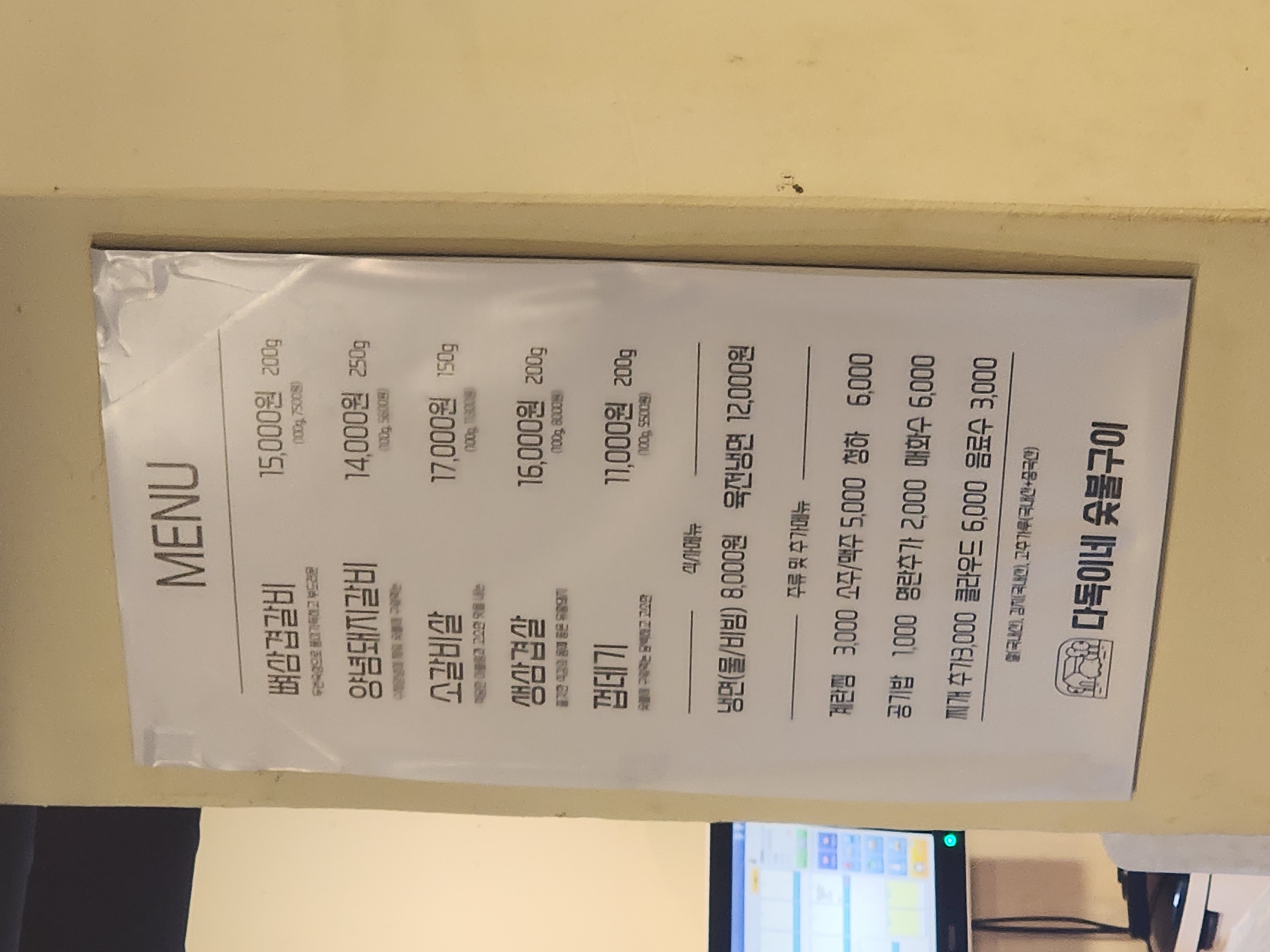 다독이네 숯불구이 메뉴 및 가격입니다.