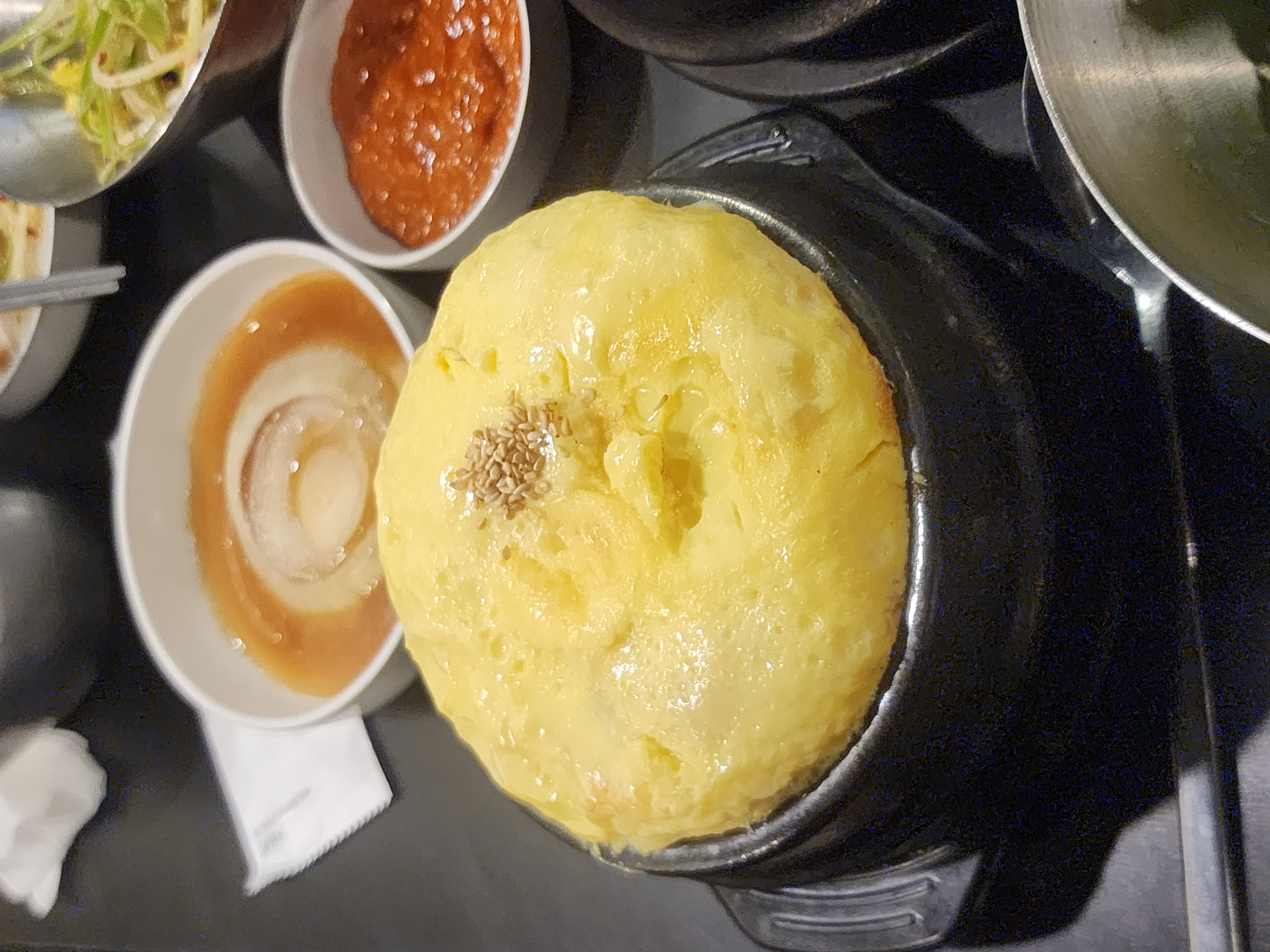 폭탄 계란찜처럼 위에 퐁신하게 올라와 있습니다.
