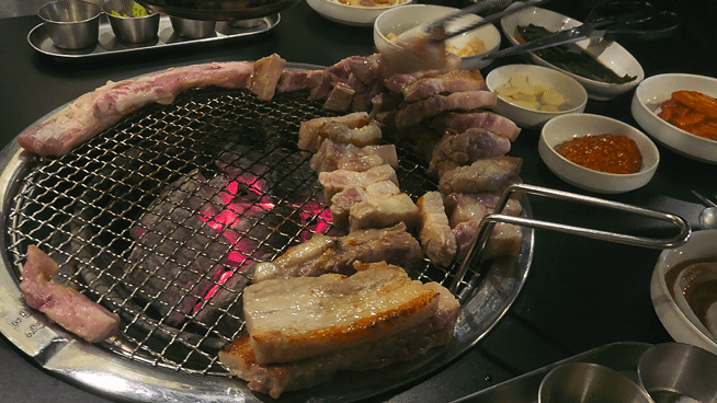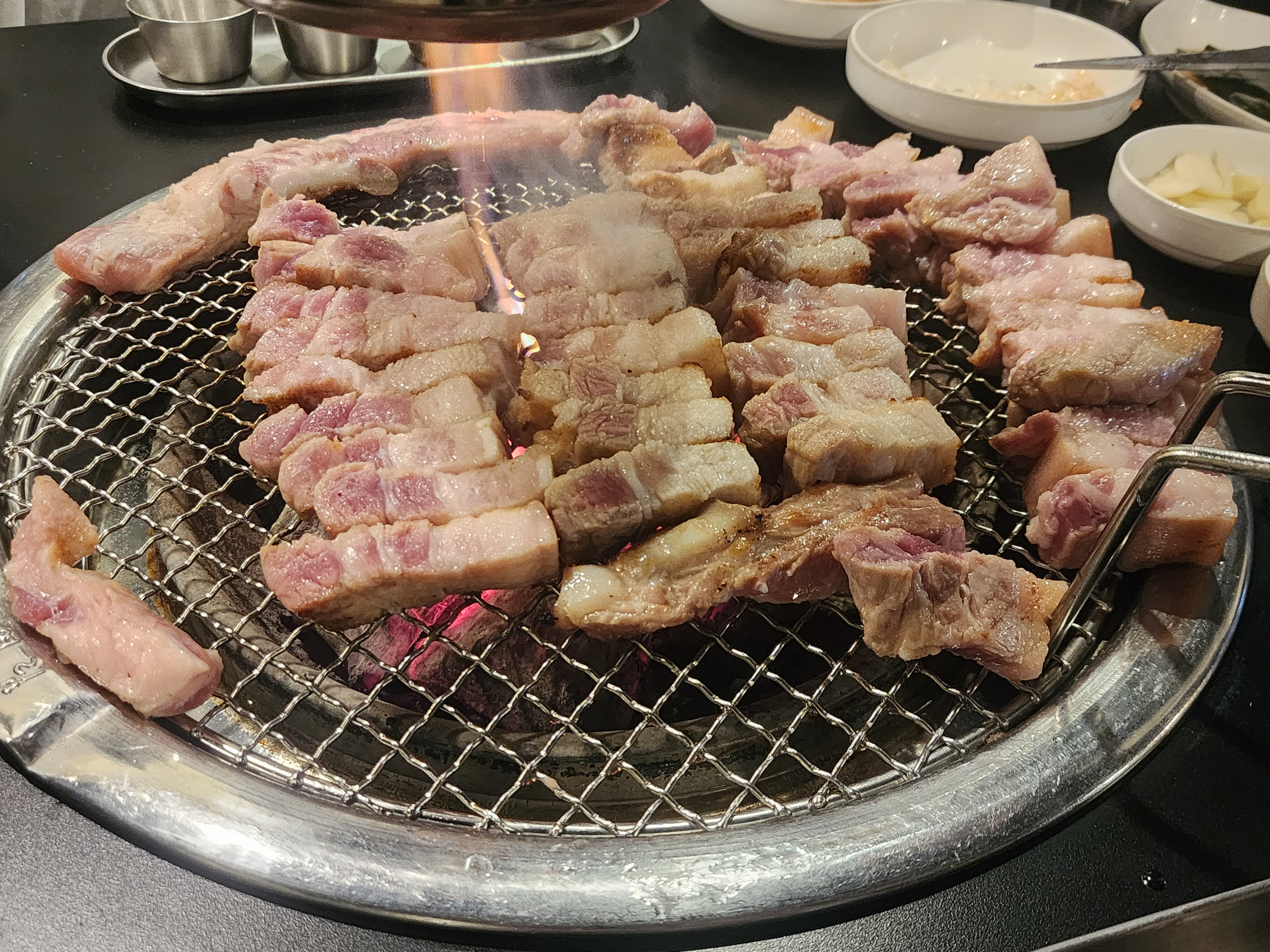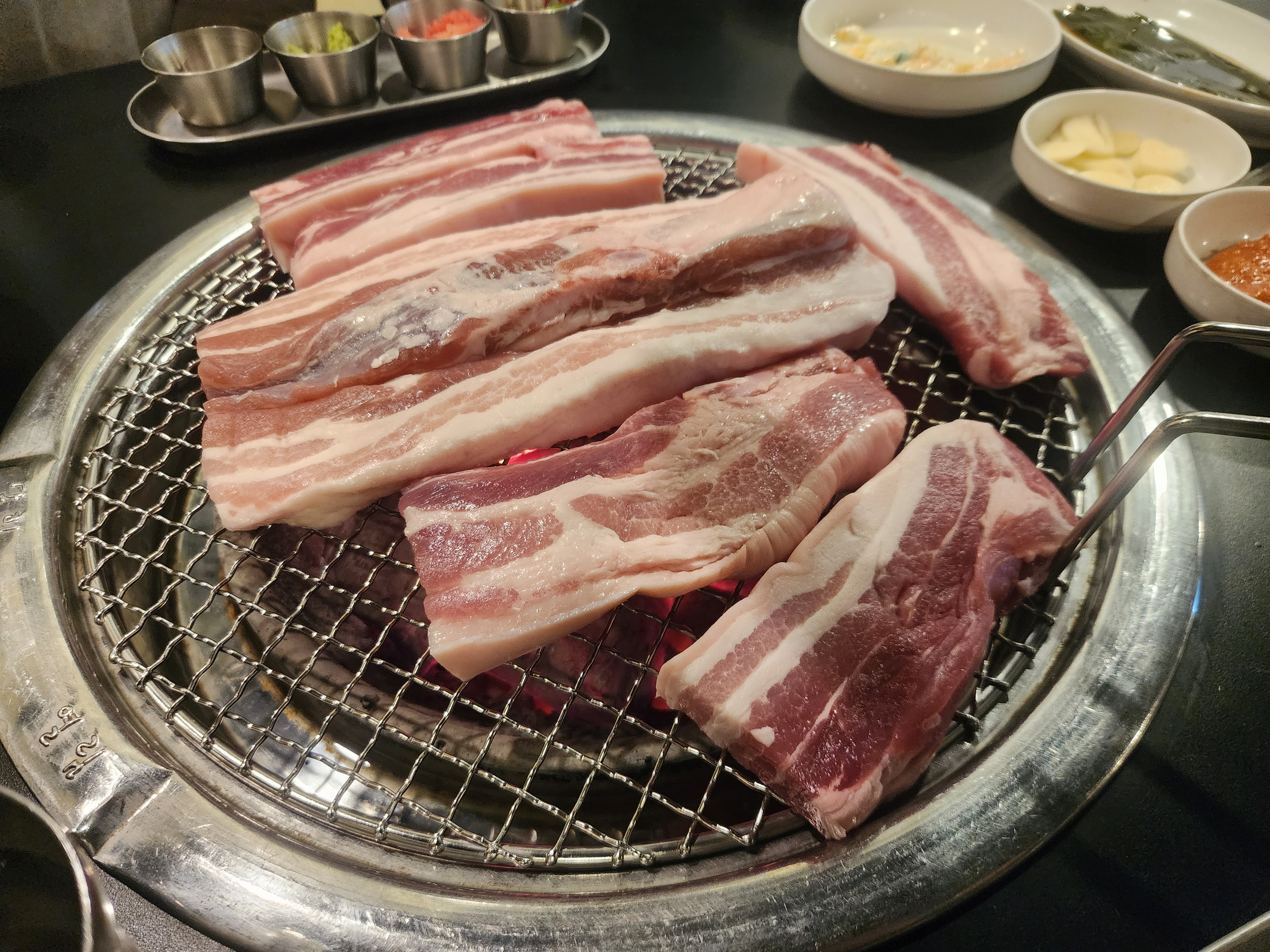 숯불에 삼겹살 굽기가 어려운데 너무 잘 구워주시고 서비스도 좋아서 너무 만족스러웠습니다.
