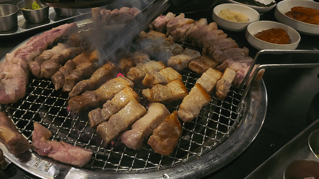 숯불이라 그런지 고기를 자주 뒤집어 주는 것 같습니다.