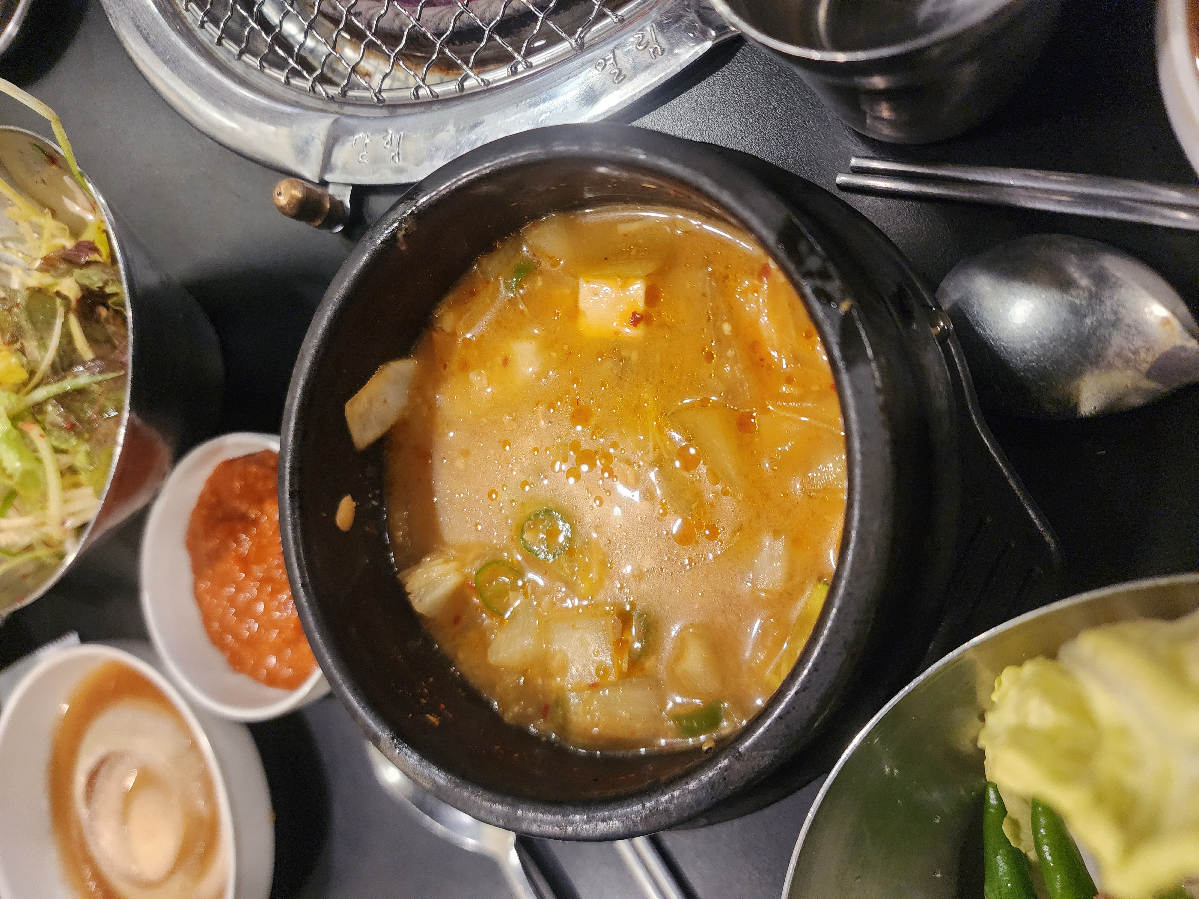 고기 먹을 때 된장찌개가 있으면 좋은데 서비스가 마음에 드네요~~