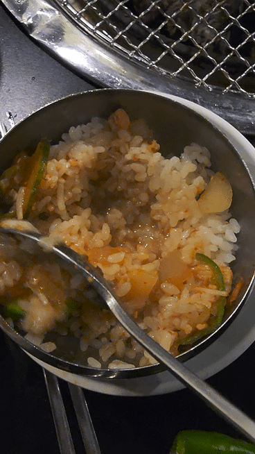 서비스로 나온 된장찌개에 밥을 비벼서 먹었습니다.