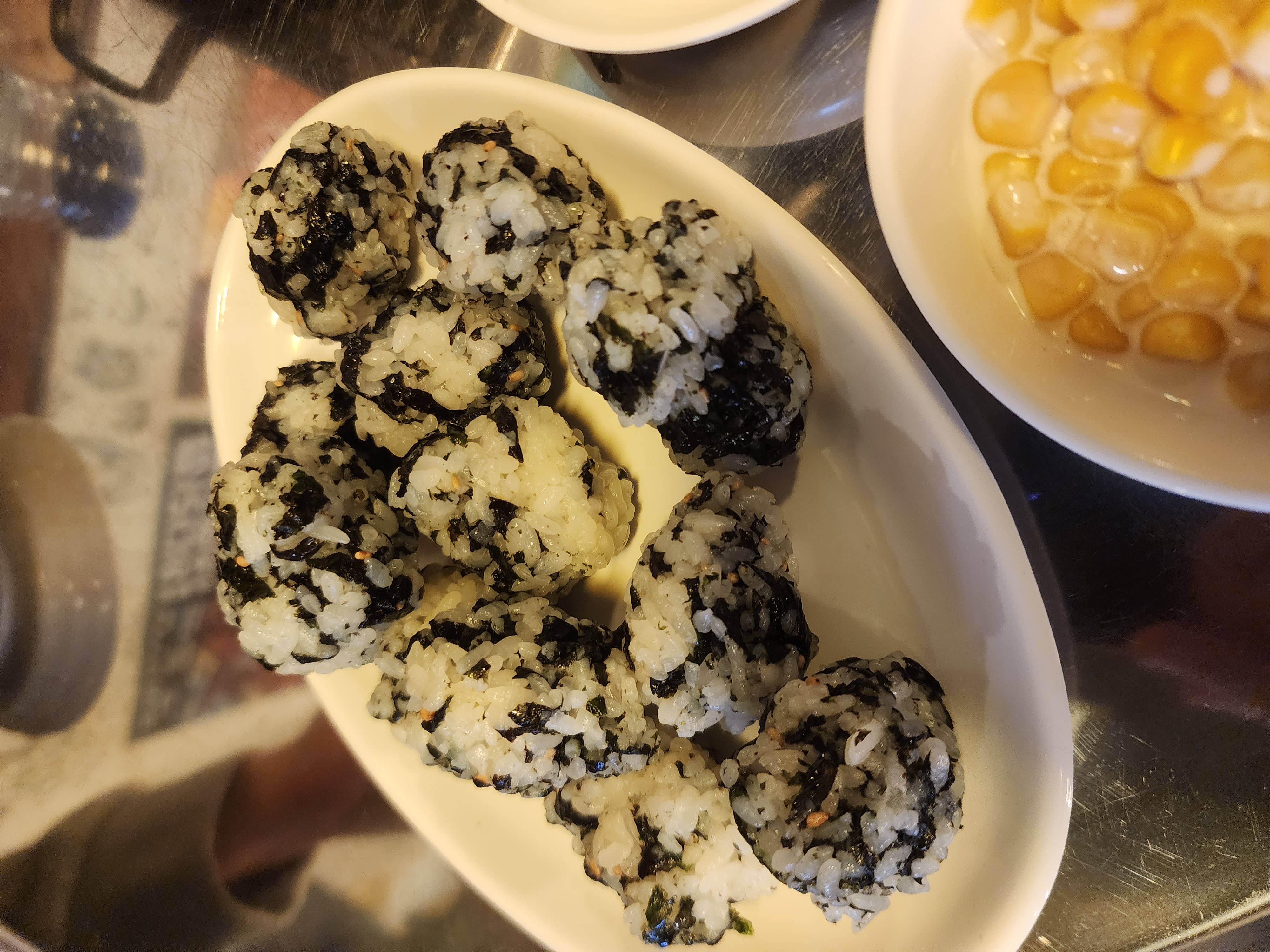 주먹밥 메뉴가 따로 있지만 저는 이것저것 넣은 것보다 김가루와 밥만 들어간 게 맛있더라고요.