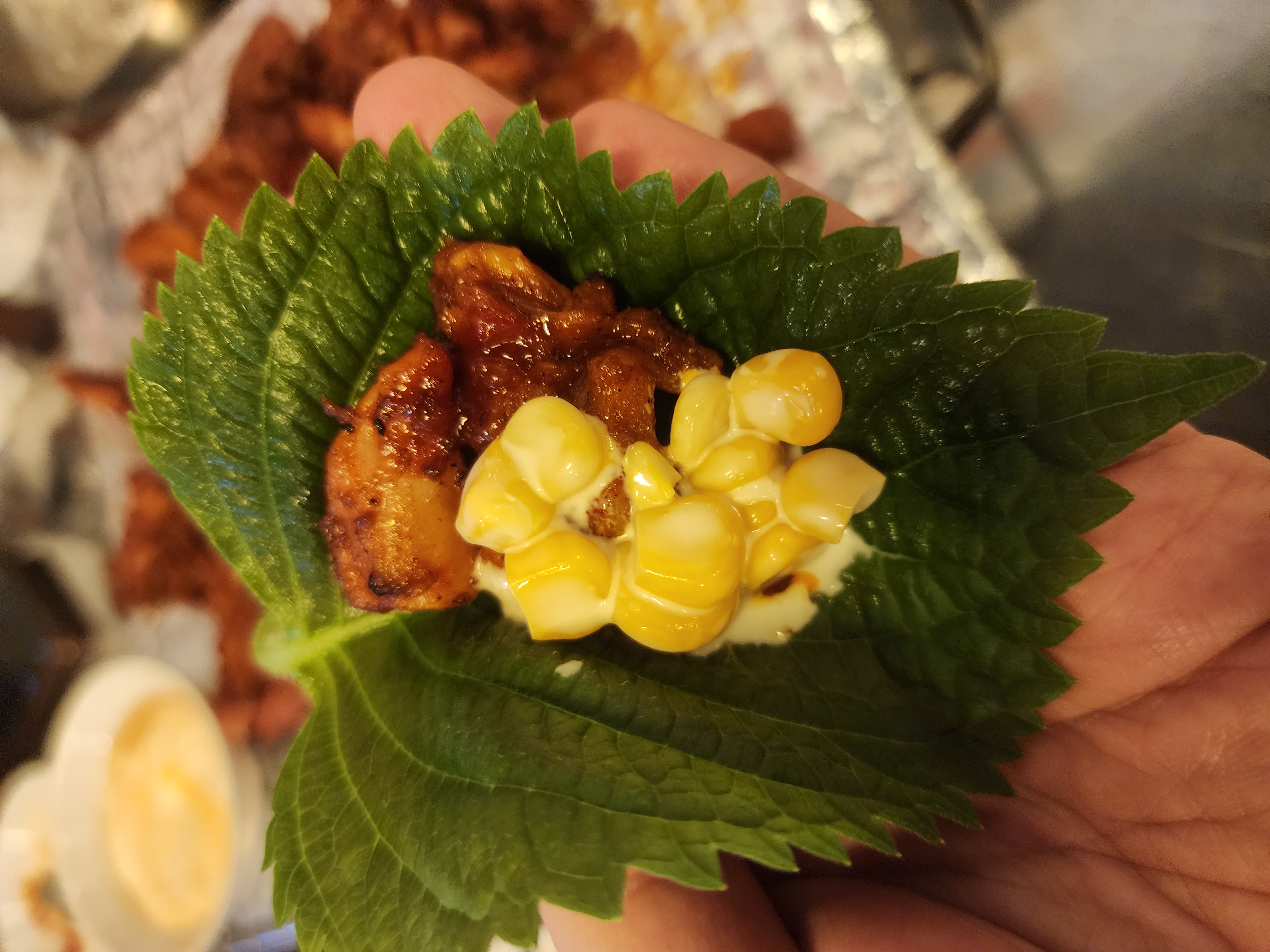 그다음 깻잎쌈을 싸서 먹었습니다.