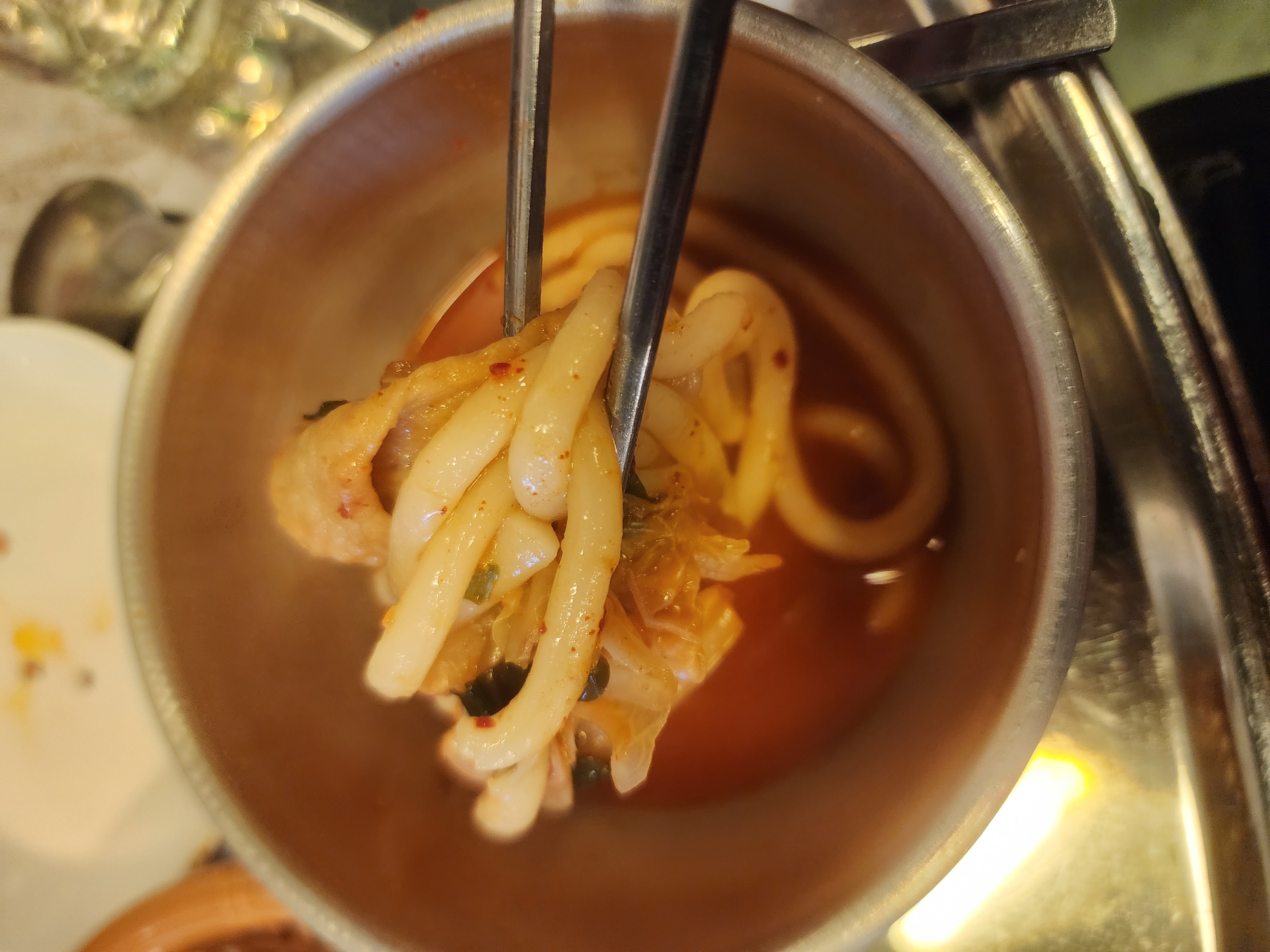 닭다리살을 어느 정도 먹었을 때 칼칼한 국물의 땡겨서 김치우동을 주문했습니다.