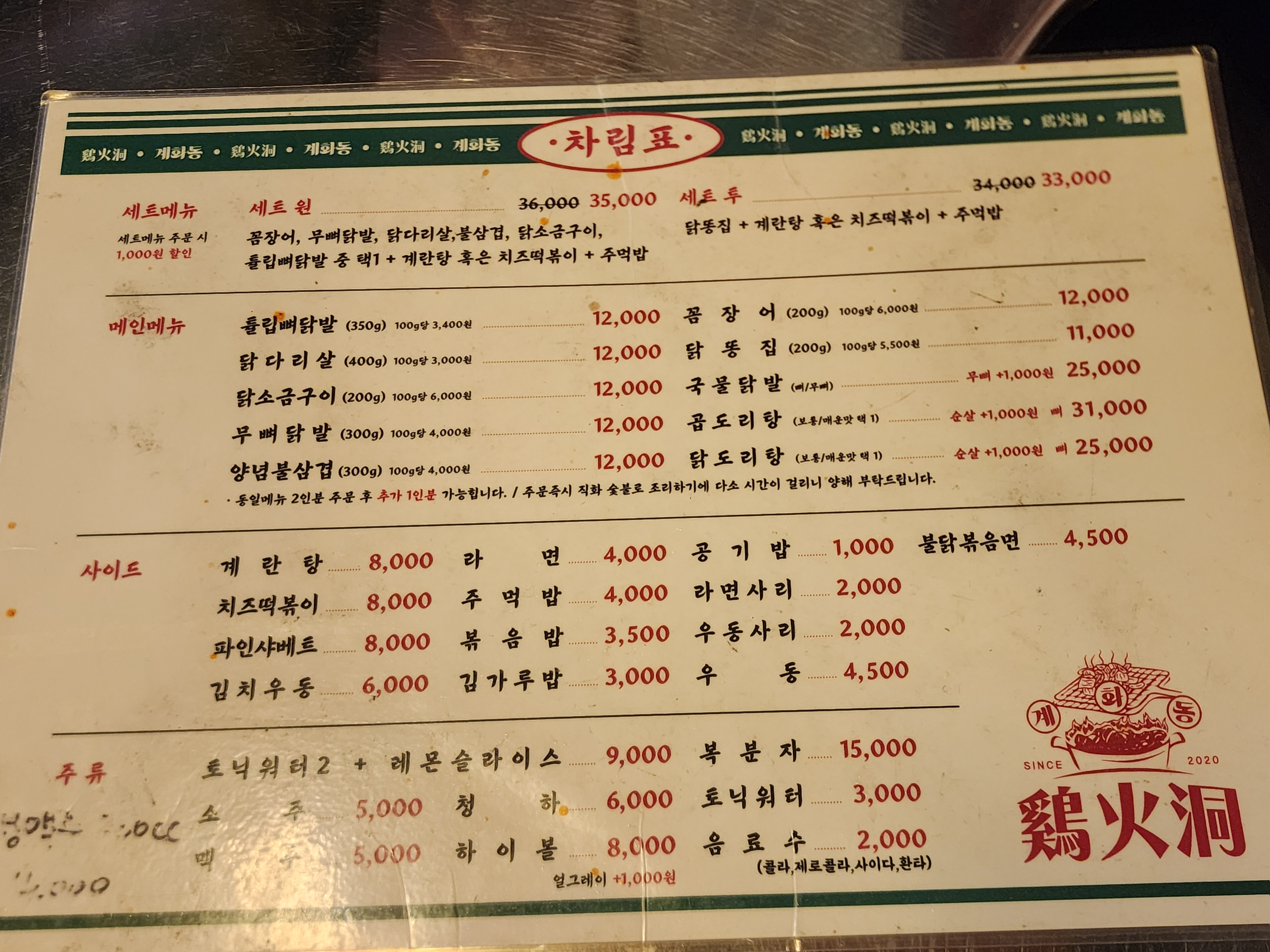 계화동 관평점 메뉴 및 가격입니다.