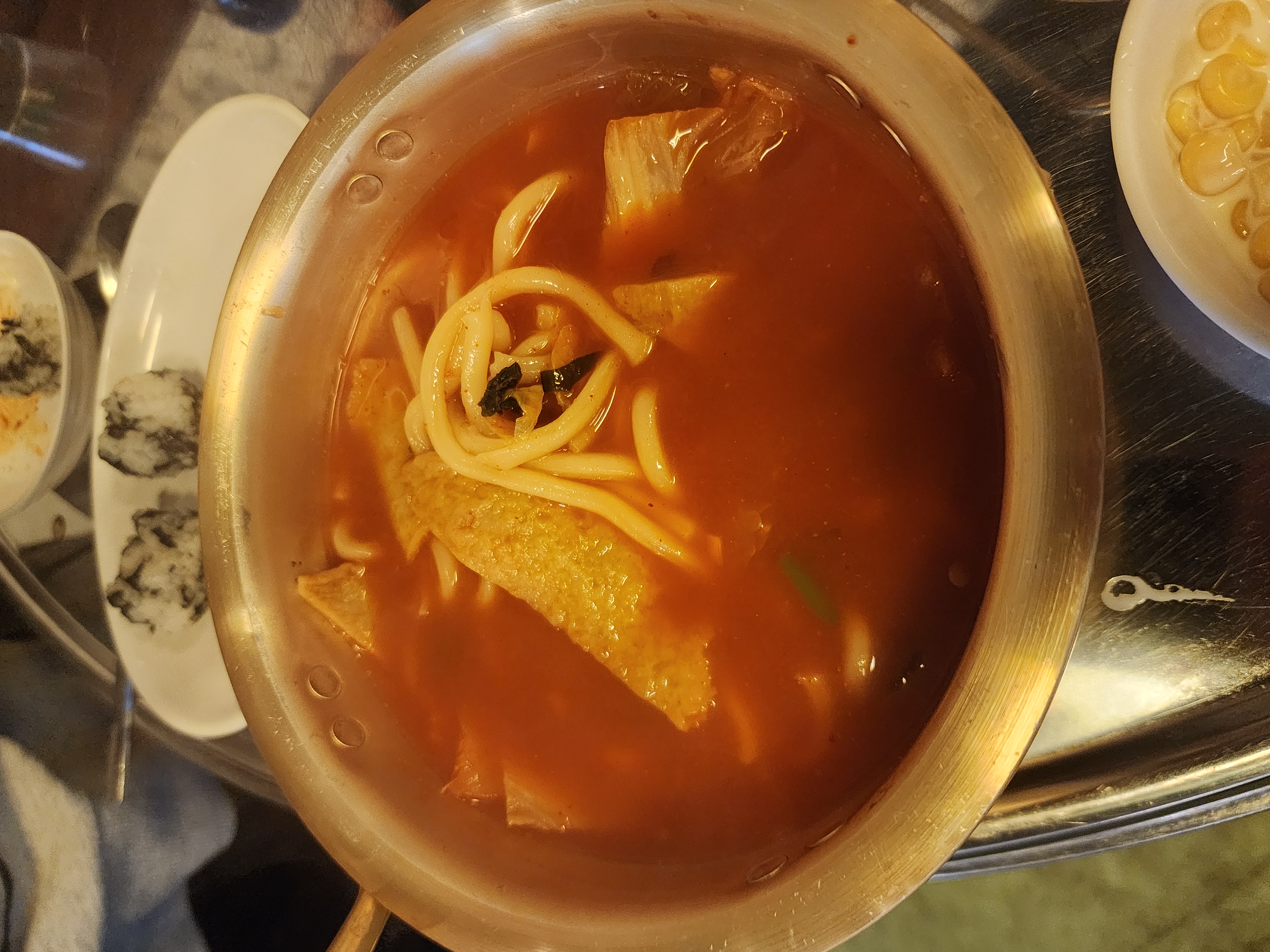 김치가 들어가서 시원 칼칼할 것 같은 냄새가 납니다.