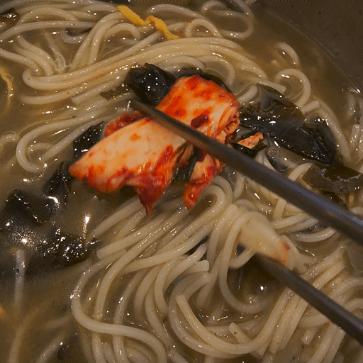 김치를 얹어서 먹었는데 확실히 국수와 김치는 찰떡궁합이죠.