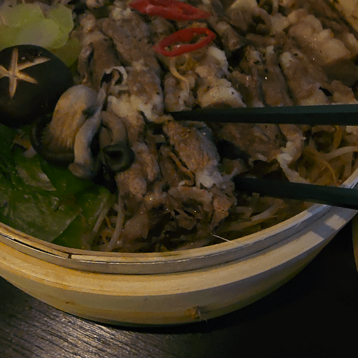 고기와 야채를 함께 칠리소스에 찍어서 먹었습니다.