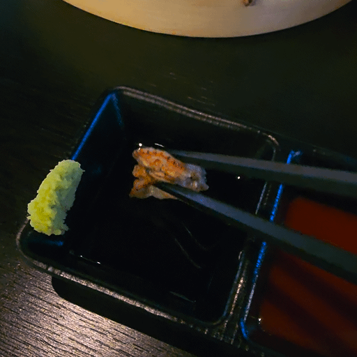 처음엔 간장에 톡톡 찍어서 먹었습니다.