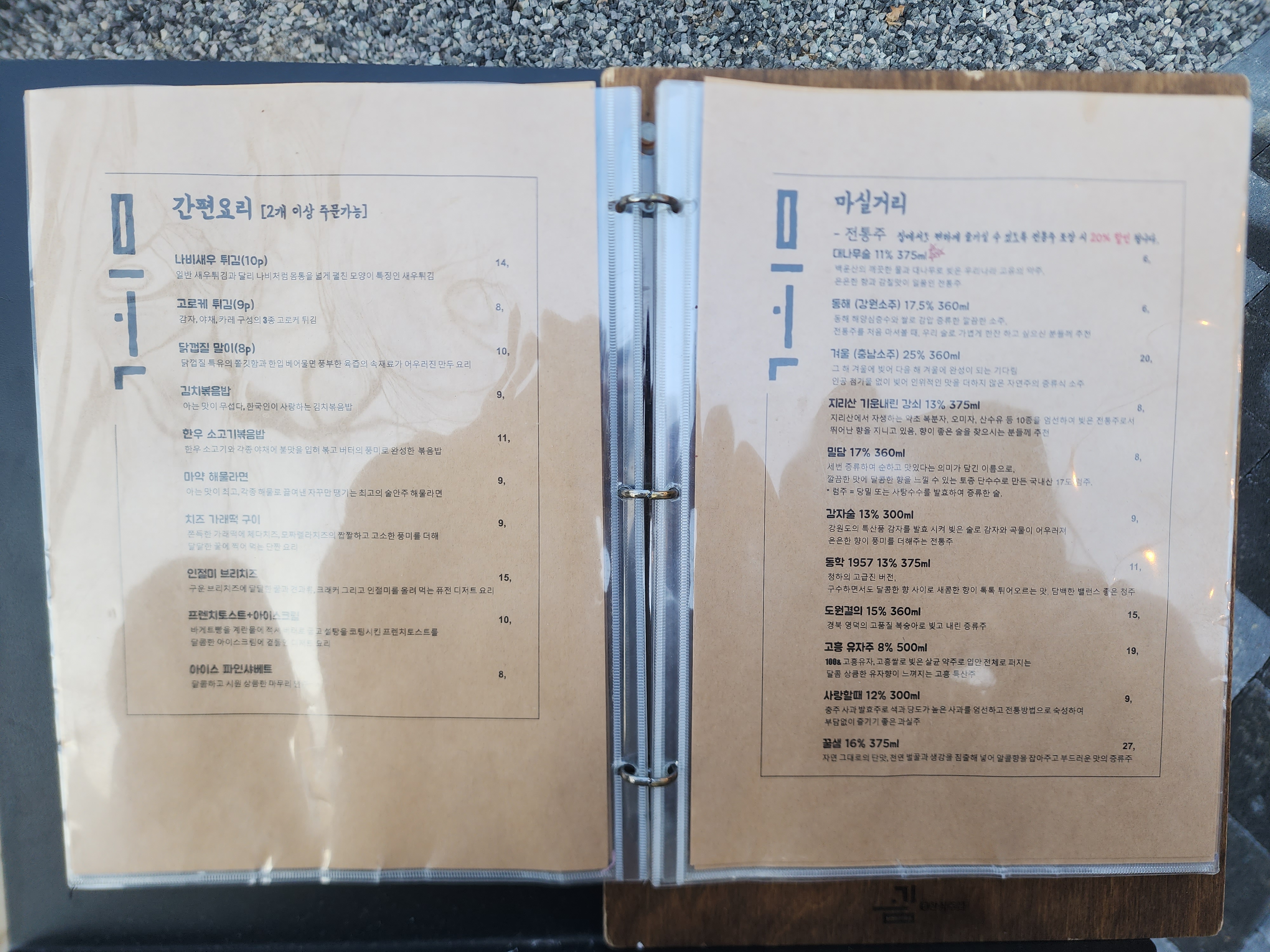 식사와 같이 먹을 수 있는 안주도 있고 술과 가볍게 먹을 수 있는 안주도 있어서 좋습니다.