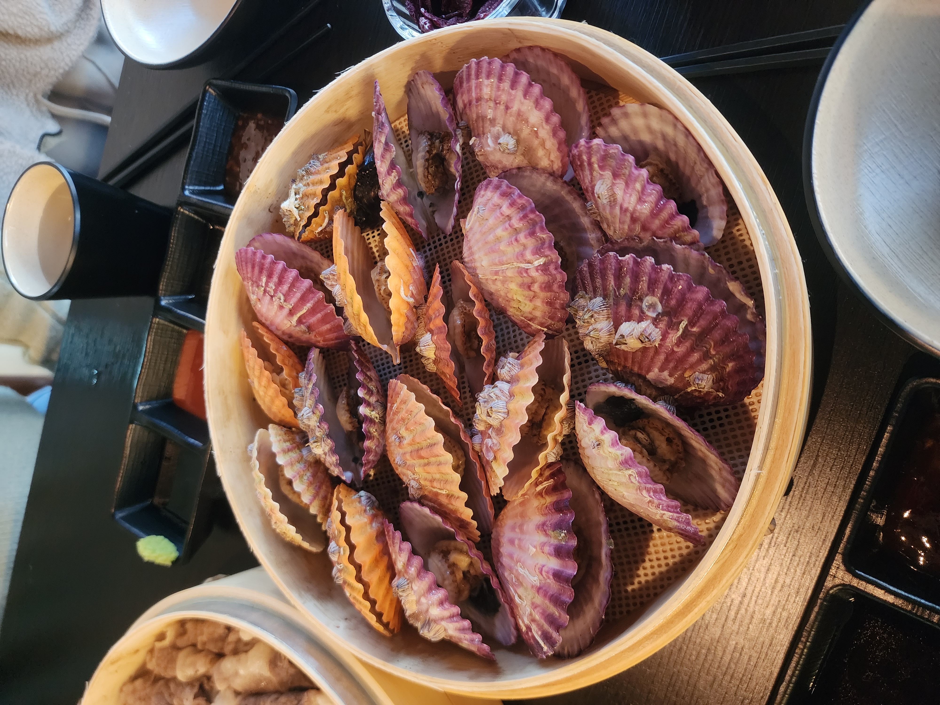 껍질도 다 열려 있어서 손으로 살짝 벌려서 가리비를 꺼내서 먹으면 됩니다.