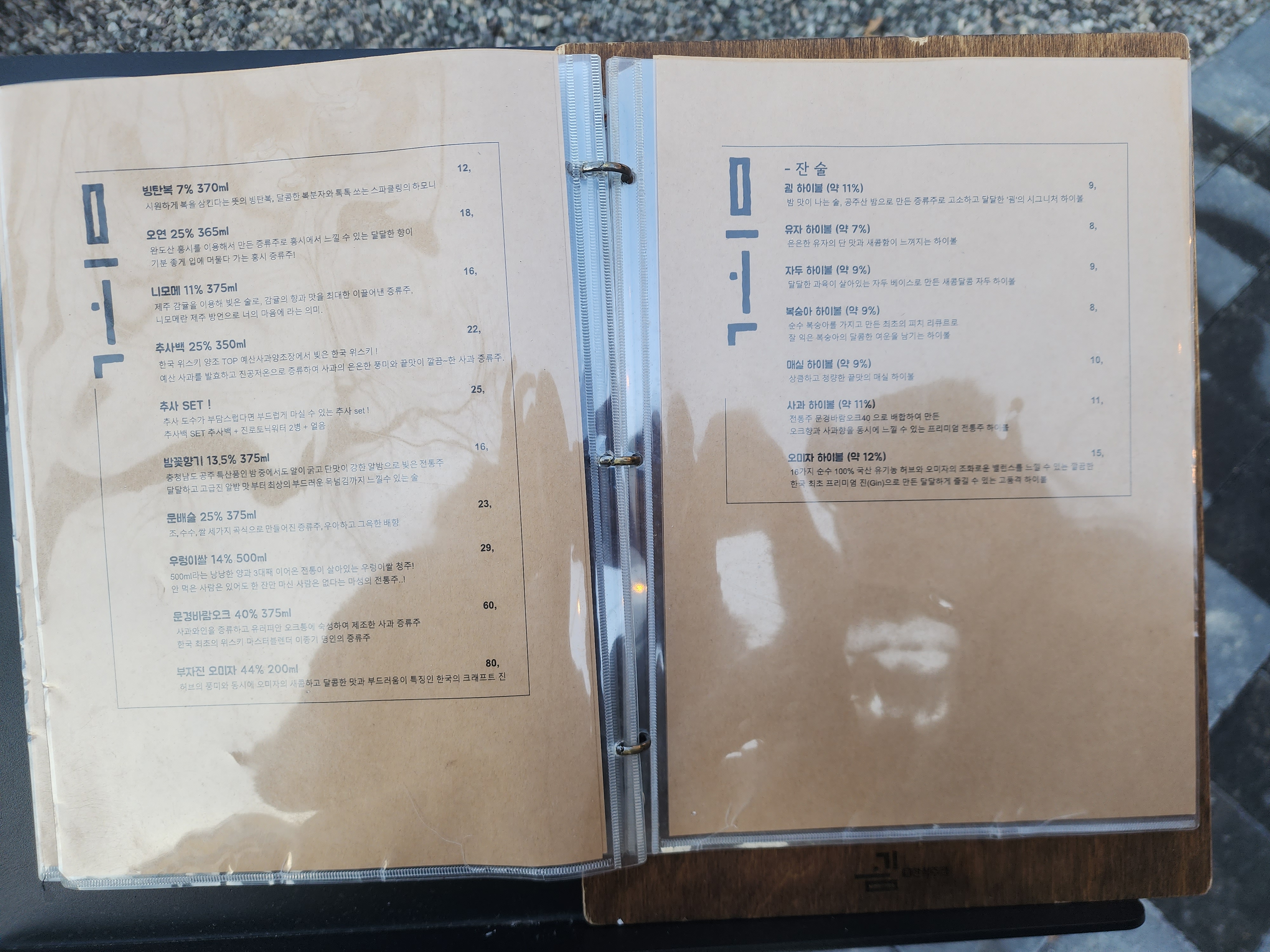 한국 전통주 종류도 많고 지역 소주도 여러 가지 팔고 있어서 골라 마시는 재미가 있습니다.