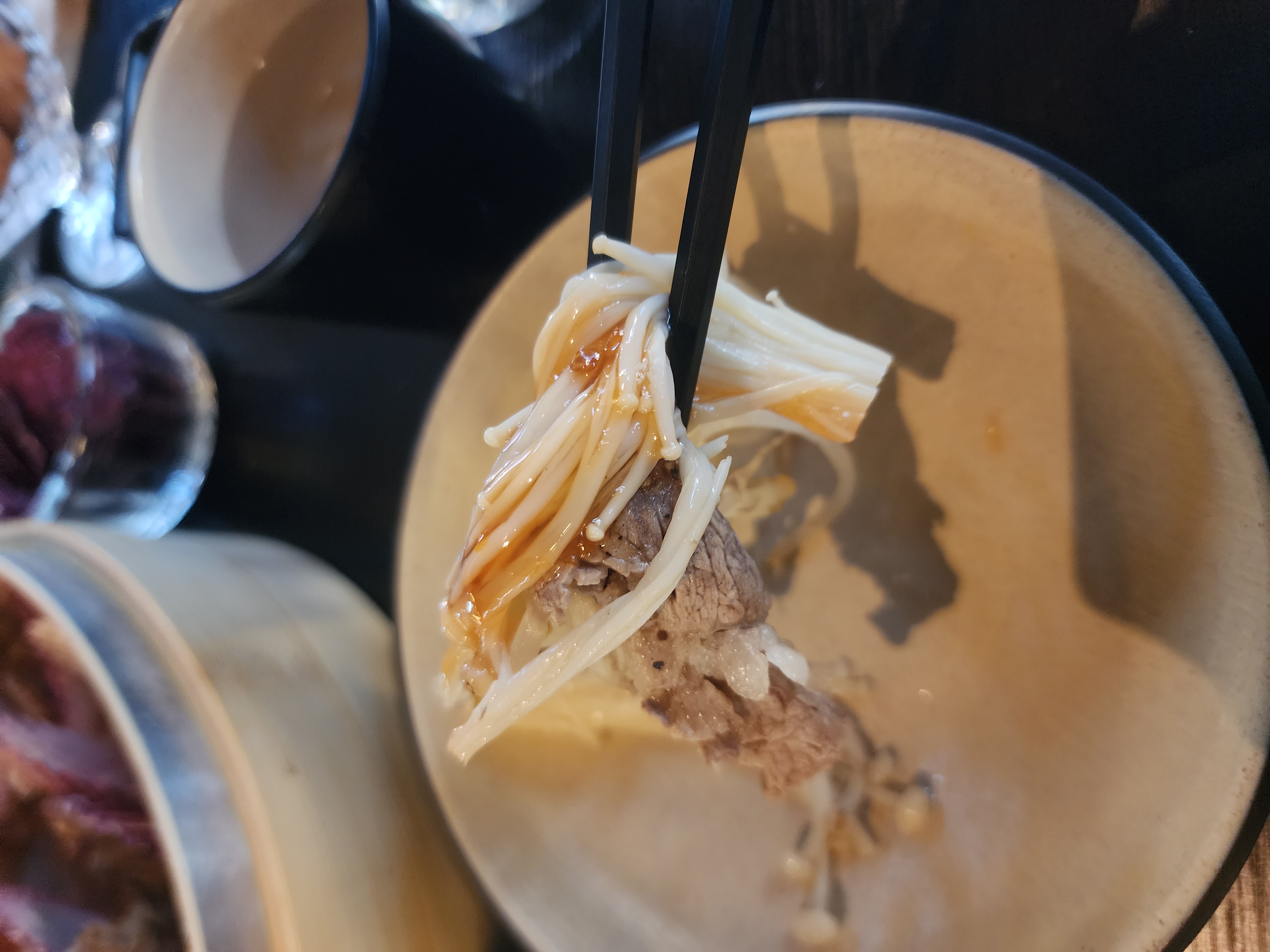 약간 폰즈 소스 느낌이 나는 소스인데 소고기 야채찜과 잘 어울려서 맛있었습니다.
