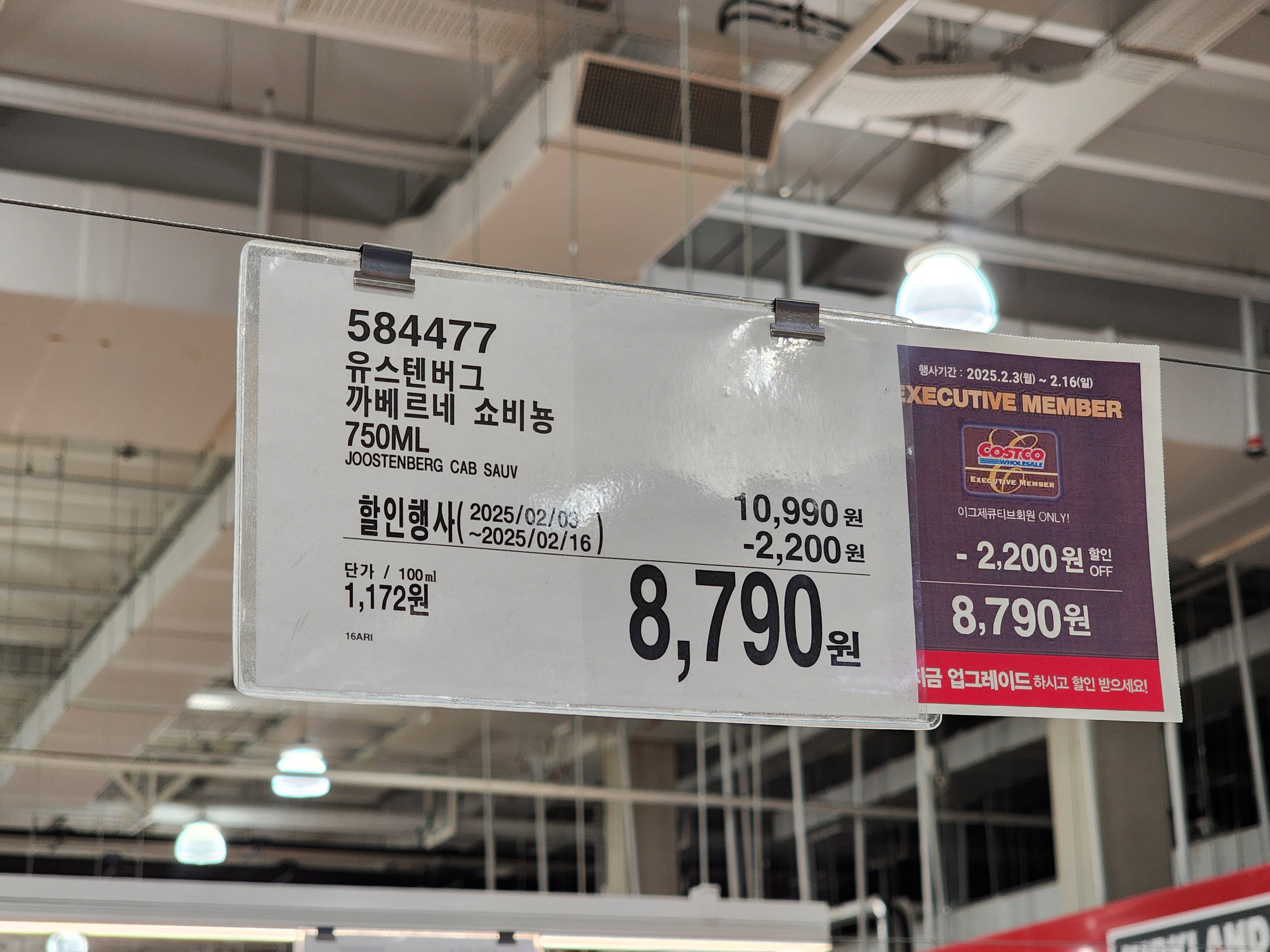 코스트코 2월 행사 때 유스텐버그 까베르네 쇼비뇽을 구매했습니다.