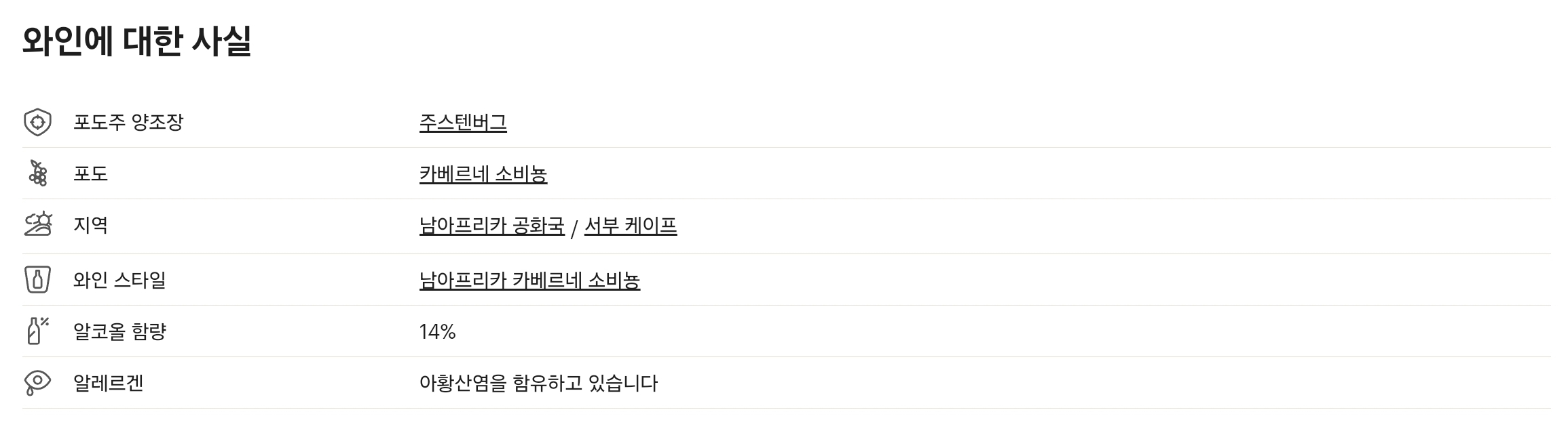 포도는 까베르네 쇼비뇽 품종을 사용하여 만들었네요.