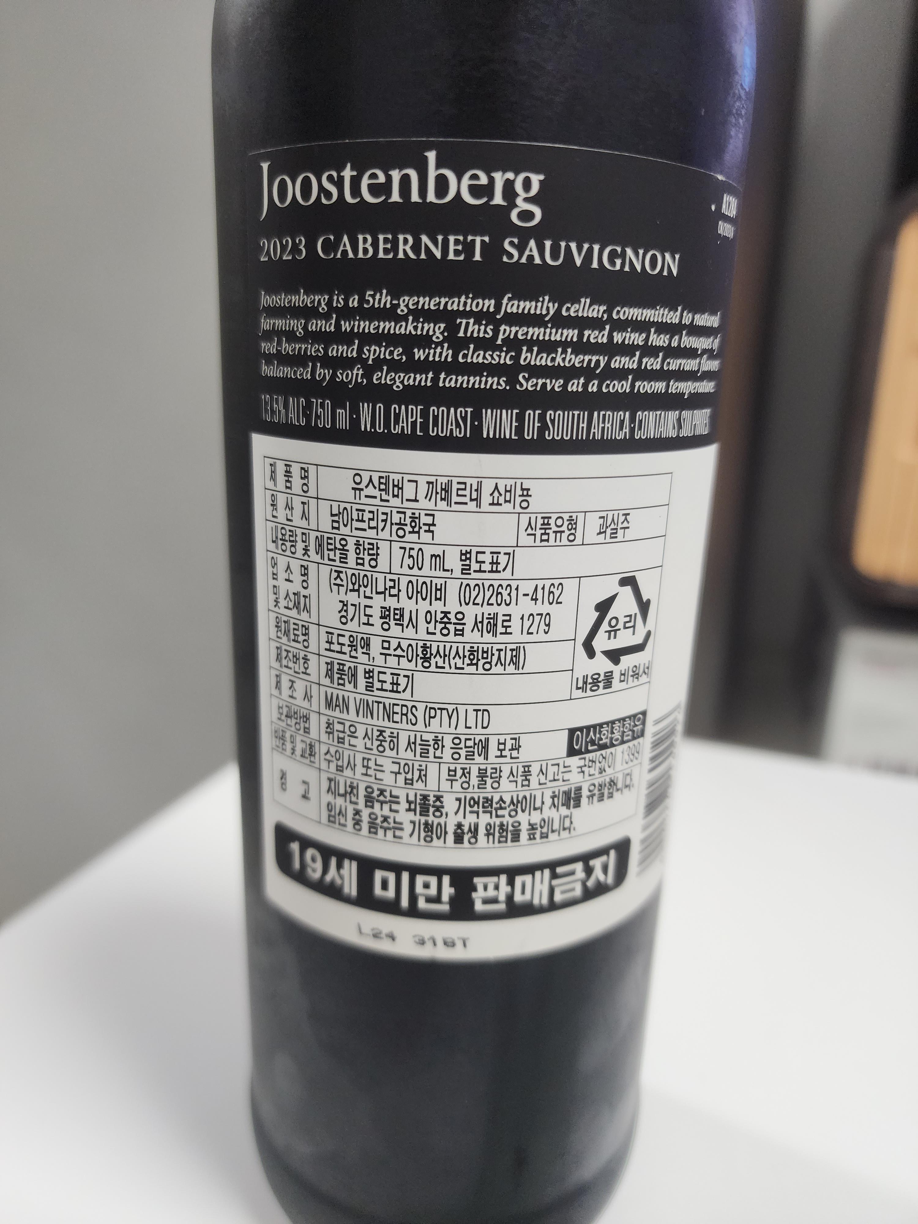 유스텐버그 까베르네 쇼비뇽은 남아프리카 공화국에서 생산된 와인이네요.