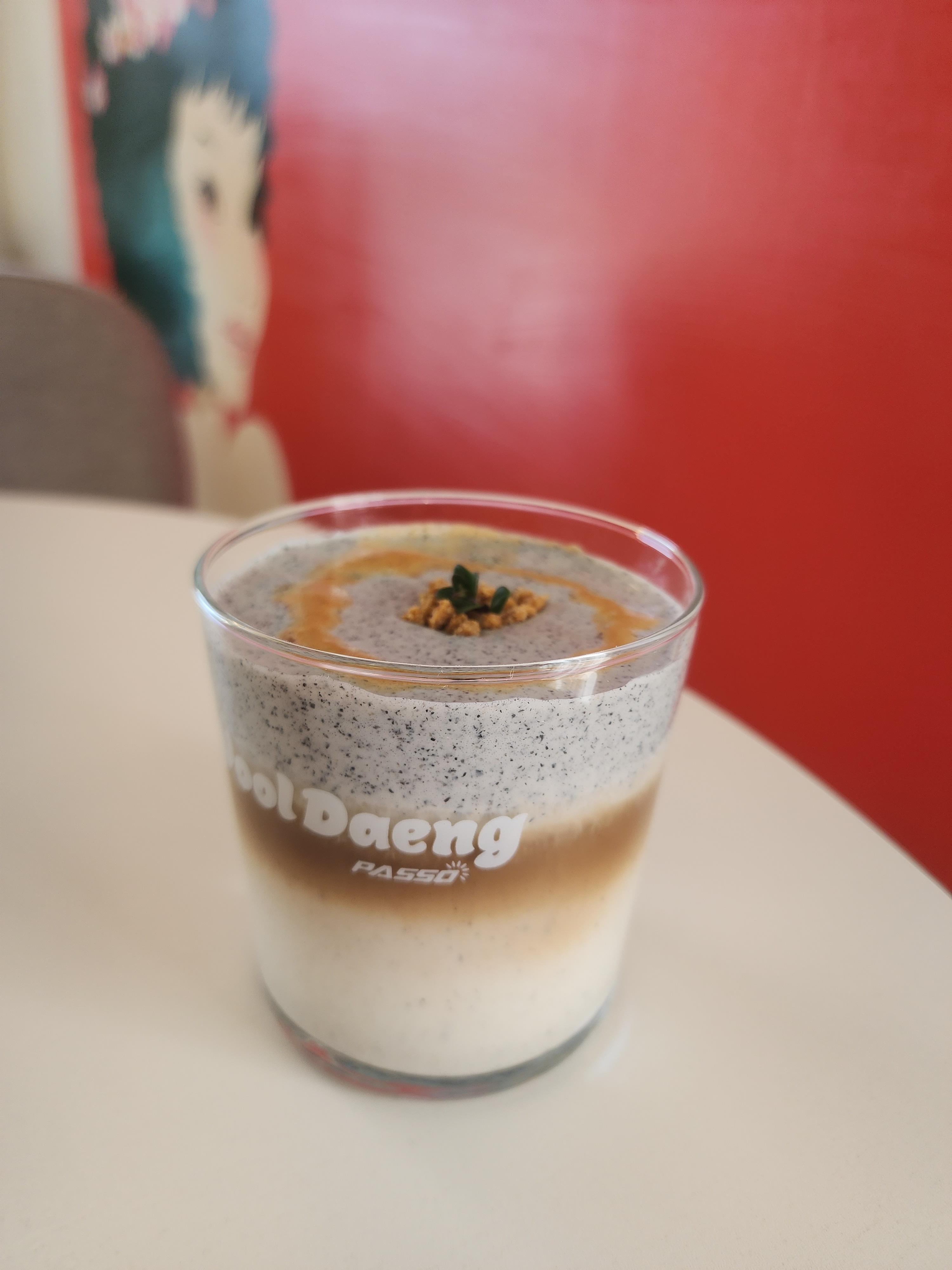 흑임자와 안에 있는 커피와의 조합이 잘 어울렸습니다.