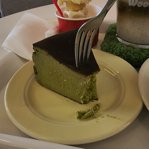 말차 맛과 향이 잘 느껴지고 바스크 치즈 케이크 특유의 꾸덕한 느낌도 들어서 맛있었습니다.