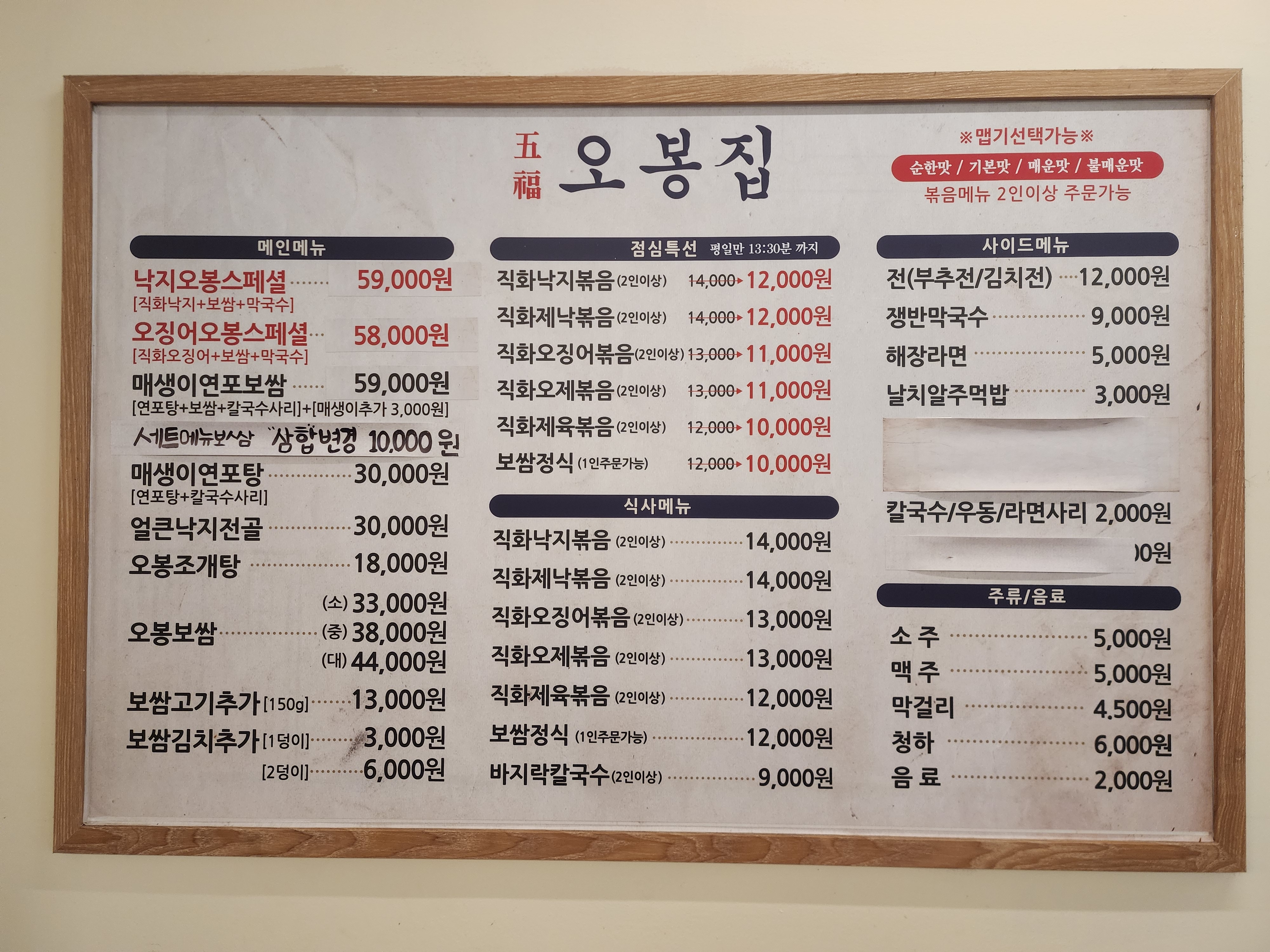 제가 오늘 먹을 메뉴는 오봉문어삼합인데 나중에 사진을 확인하니 메뉴판에 없더라고요.