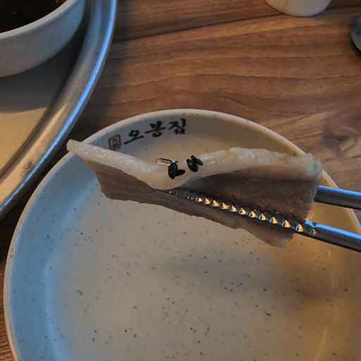 바로 한 입 먹었는데 돼지고기 냄새가 전혀 안 나고 굉장히 부드러워서 맛있습니다.