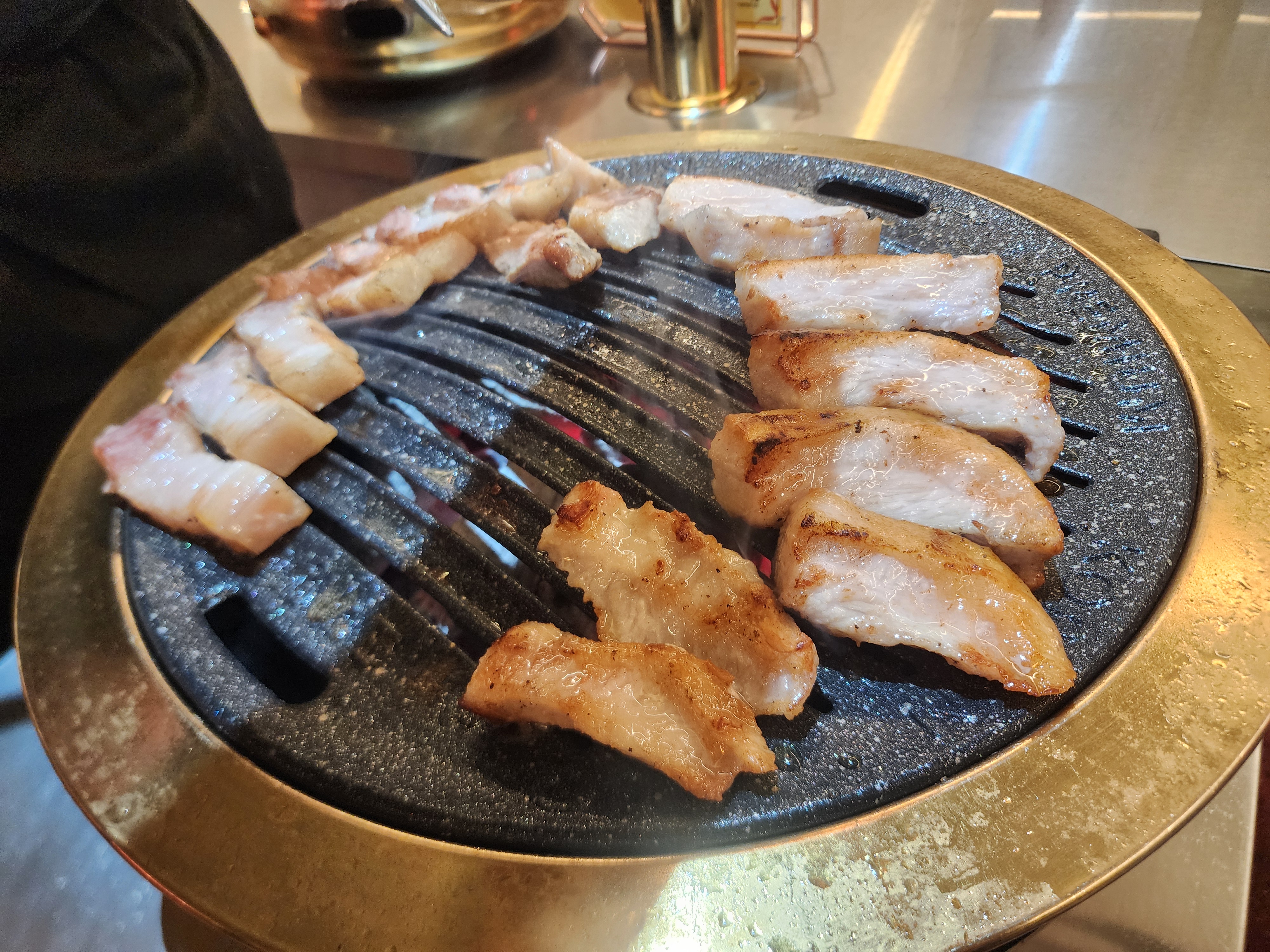 와이프와 편하게 대화를 하면서 고기 굽는 모습을 지켜봤습니다.