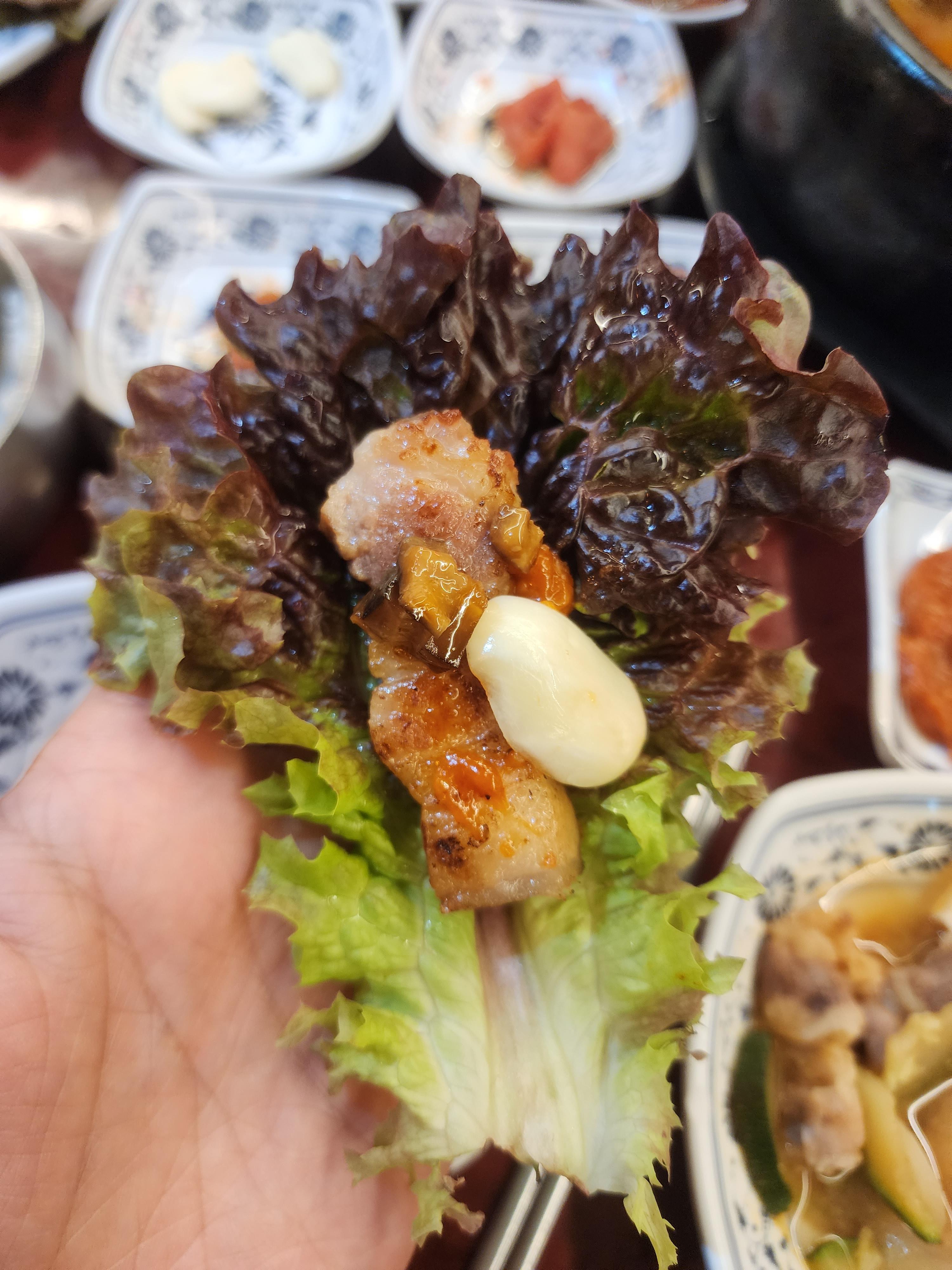 역시 돼지고기는 이렇게 같이 먹는 게 정말 맛있습니다.