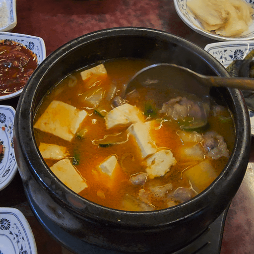 그래서 같이 공깃밥과 같이 먹을 수 있는 차돌 된장찌개를 추가로 주문했습니다.