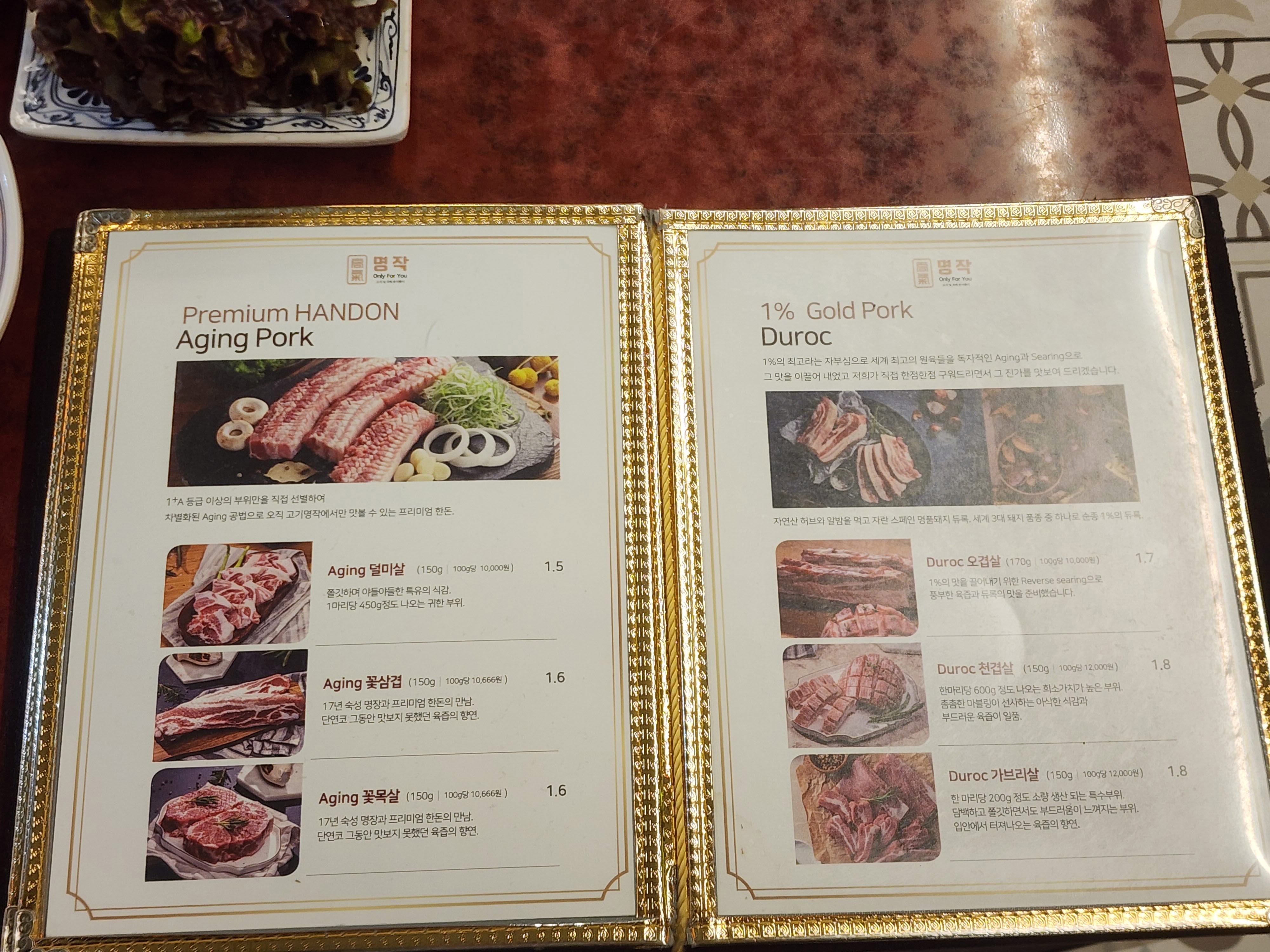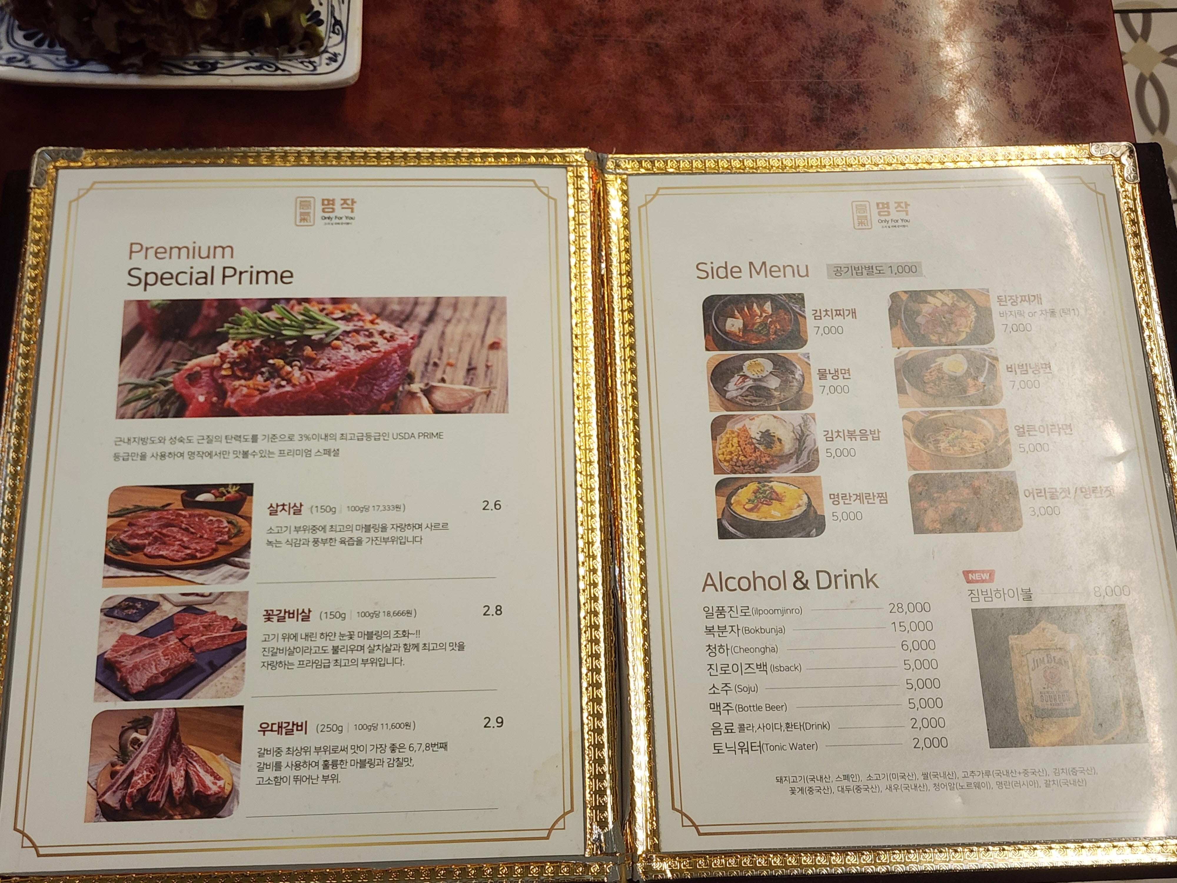고기명작 메뉴 및 가격입니다.